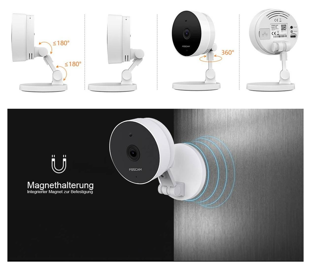 Die Foscam C5M ist eine flexible Überwachungskamera mit einem weiten Blickwinkel von 135°. Durch manuelles Schwenken und Neigen der Kamera kann ein horizontaler Bereich von 360° und ein vertikaler Bereich von 310° abgedeckt werden. So entgeht Ihnen nichts Wichtiges und Sie können die Kamera ganz nach Ihren Bedürfnissen ausrichten. Die Installation ist dank des integrierten Magneten an der Unterseite sehr einfach - Sie müssen keine Löcher bohren oder Kabel verlegen.