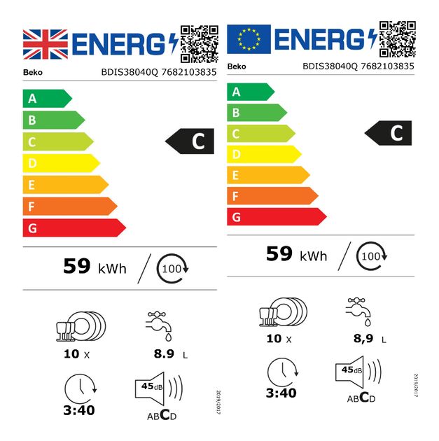 Beko BDIS38040Q, Voll integriert, Single (45 cm breit), Berührung, LCD, 1,3 m, 1,6 cm