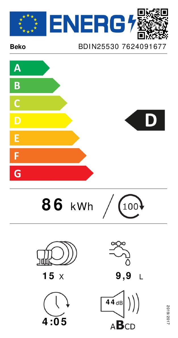BDIN25530 60 cm Geschirrspüler vollintegriert (ohne Front) Leise 15 Maßgedecke Restwärme