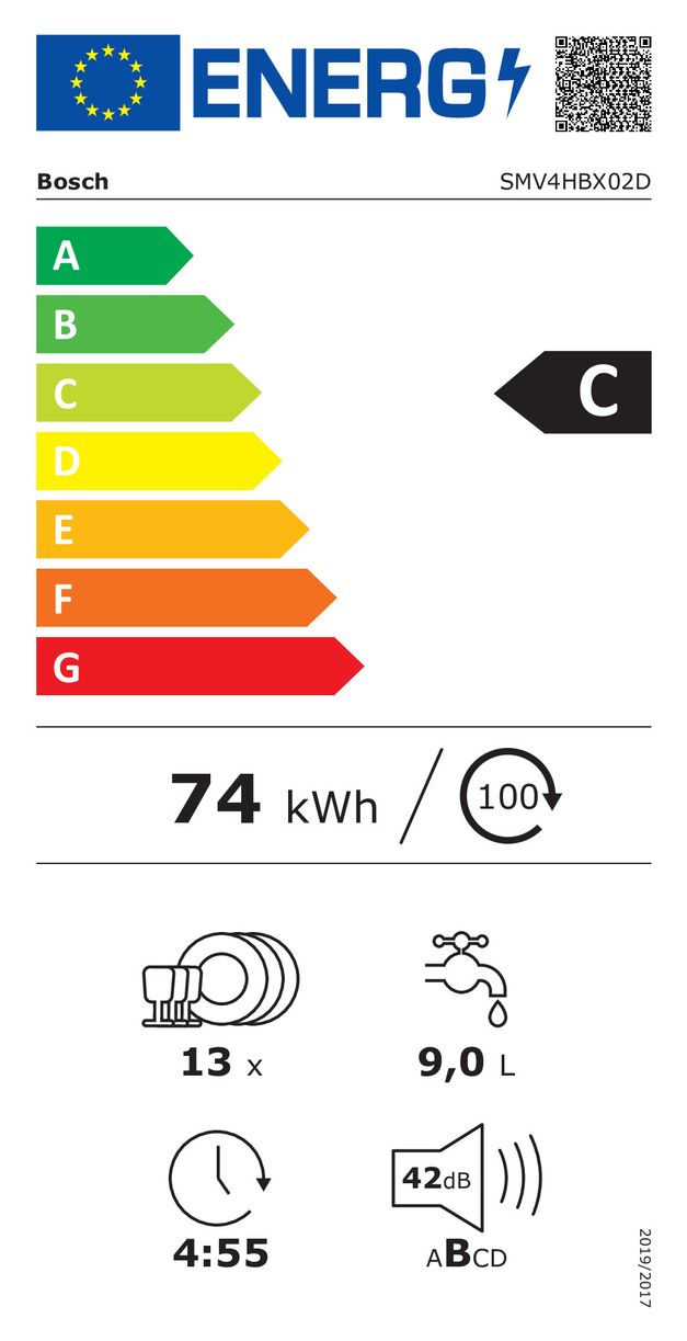 Serie 4 SMV4HBX02D 60 cm Geschirrspüler vollintegriert (ohne Front) Sehr leise 13 Maßgedecke aquaStop Funktion Wärmetauscher