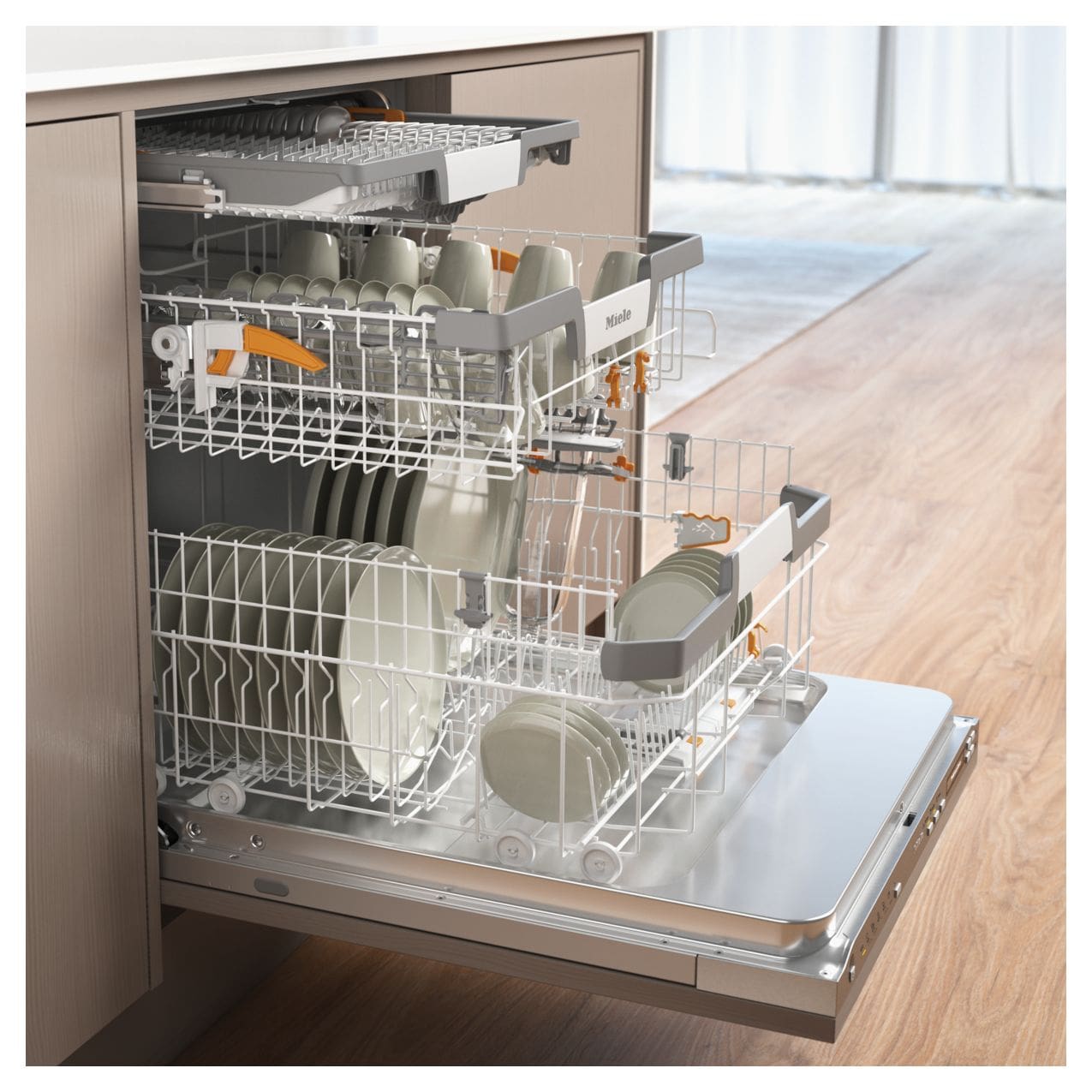 Miele Geschirrspüler bieten Platz für bis 14 Maßgedecke. Dabei achten wir bei unseren Körben darauf, dass wir neben der Norm auch Ihre Wünsche und Bedürfnisse erfüllen, indem jedes Ihrer Geschirrteile nicht nur den optimalen Platz findet, sondern auch sauber und trocken wird.