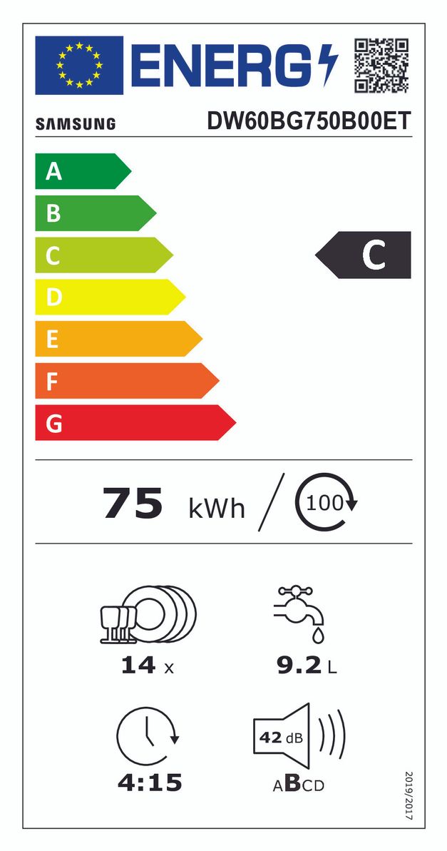 DW60BG750B00ET 60 cm Geschirrspüler vollintegriert (ohne Front) Sehr leise 14 Maßgedecke aquaStop Funktion