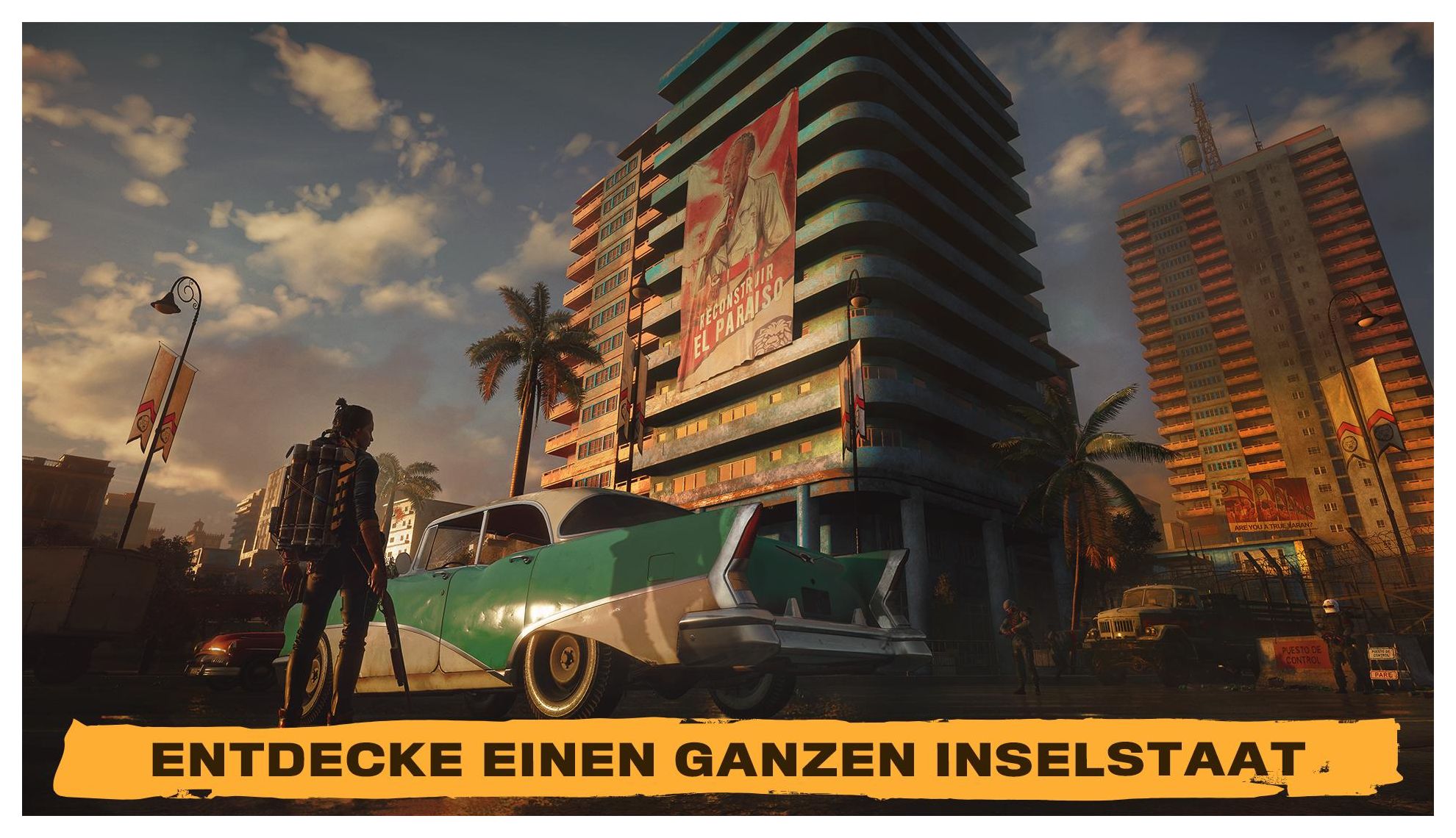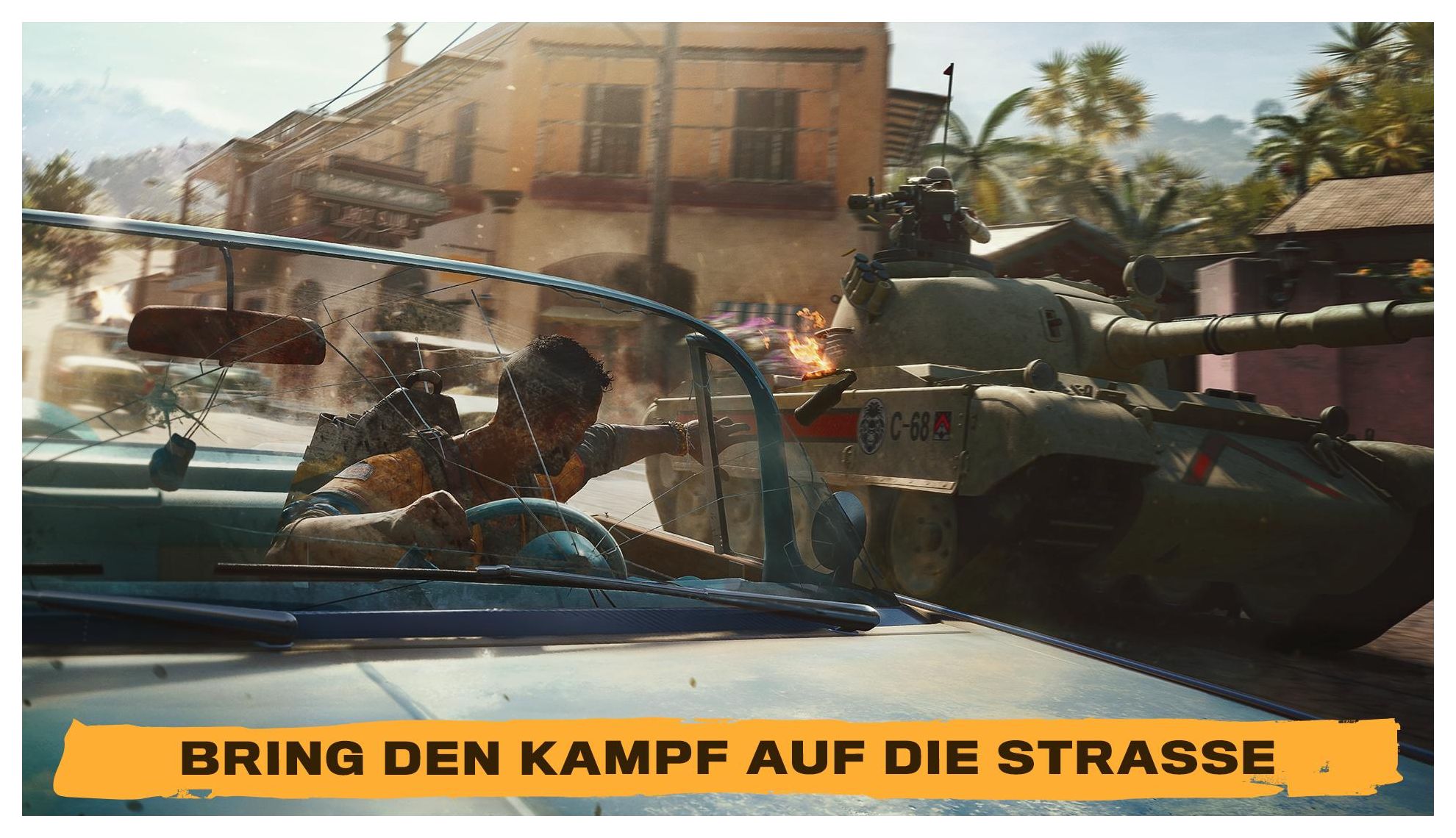 Spiele als einheimischer Yaran Dani Rojas und kämpfe als Guerillakrieger für die Freiheit deiner Nation. Willkommen auf Yara, ein in der Zeit stehen gebliebenes tropisches Paradies. Far Cry 6 lässt den Spieler in die adrenalinreiche Welt einer modernen Guerilla-Revolution eintauchen. Schließ dich der Revolution an und leiste Widerstand gegen das unterdrückerische Regime des Diktators Antón Castillo und seinem Teenager-Sohn Diego, die von den Hollywood-Stars Giancarlo Esposito ("The Mandalorian", "Breaking Bad") und Anthony Gonzalez ("Coco") zum Leben erweckt werden. Spiele als Dani Rojas und erlebe die Geschichte des Militär-Aussteigers, der zum Guerilla-Revolutionär wurde. Um eine Chance gegenüber Antóns Militär zu haben, musst du die Resolver-Philosophie annehmen und ein Arsenal von einzigartigen und überraschenden neuen Waffen, Fahrzeugen und Tiergefährten einsetzen, um eine Revolutionsbewegung in Gang zu setzen, die das tyrannische Regime in Grund und Boden stampft. Werde zum Guerilla Spiele Dani Rojas als männlichen oder weiblichen Charakter und erlebe eine fesselnde Geschichte, die dich vom zögerlichen Bürger zum führenden Kämpfer gegen Antóns Regime macht. Tauche ein in die Action und das Chaos des Guerillakampfs und versammle Soldaten und Ressourcen, die dir in deinem Kampf behilflich sein werden. Befreie Yara im Zwei-Spieler-Koop-Modus Lade einen Freund oder anderen Spieler ein und spielt die gesamte Kampagne online im Zwei-Spieler-Koop-Modus. Setze deinen Fortschritt im Solo-Modus fort oder reiche einem Guerilla-Kollegen in dessen Sitzung eine helfende Hand. Die Macht einer Armee Nimm die Resolver-Philosophie an und erstelle ein tödliches Arsenal voller improvisierter Waffen. Zeig Antóns Truppen etwas von dem Einfallsreichtum der Guerillas: Schwinge eine Minigun, die von einem Motorradmotor angetrieben wird, oder setze Rucksäcke ein, die Lenkraketen abfeuern. Zerrissenes Yara Erkunde das bisher größte Far Cry voller Dschungel, Strände und Stadtlandschaften. Du kannst die Zügel eines Pferdes in die Hand nehmen, oder einen Panzer beschlagnahmen - wähle deine Lieblingsfortbewegungsmethode, um dich innerhalb einer gesamten Inselnation zurechtzufinden.