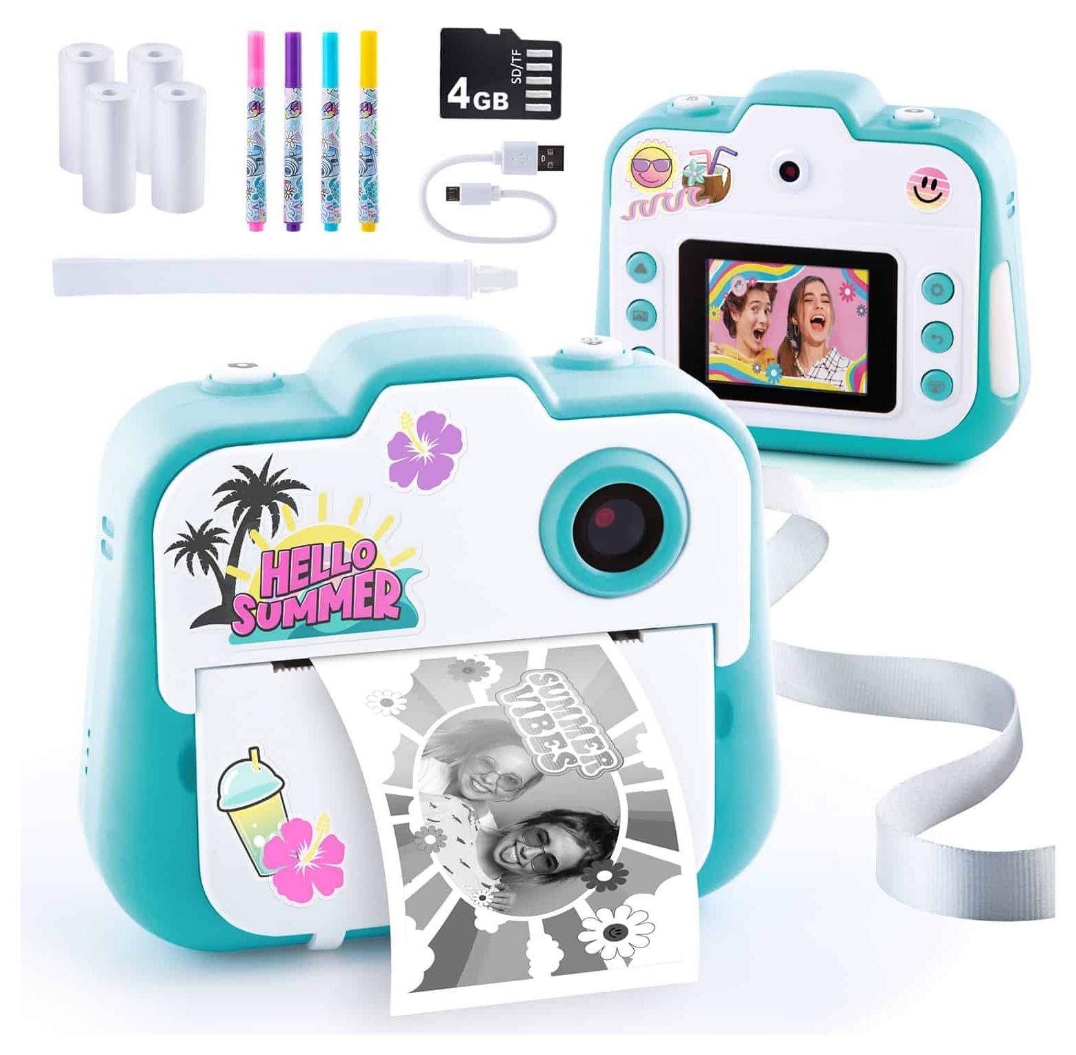 Stundenlanger Foto- und Video-Spaß ist mit dieser einzigartigen Digital-Kamera garantiert! Nimm Fotos und Videos auf, speichere sie auf der Micro-SD Speicherkarte und drucke die Fotos, die dir am besten gefallen direkt aus. Dazu ist keine Druckfarbe erforderlich, denn du druckst auf speziellem Thermopapier, was bedeutet, du hast auch keine Trocknungszeit. Wähle zusätzlich aus 22 verschiedenen Rahmen und 4 Filtern. Die Kamera verfügt über Mehrfach-Aufnahme- und Timer Modus. Verziere sie dann mit tollen Stickern und bemale sie, wenn du willst, mit den speziellen Farbmarker Stiften. Technische Daten: Hochauflösende Digital Kamera mit 12 Megapixel Auflösung, 4GB Micro-SD Speicherkarte, Front und Rear Dual Lense, 6 cm Farb-Display und eingebauter 200 Dpi Drucker.