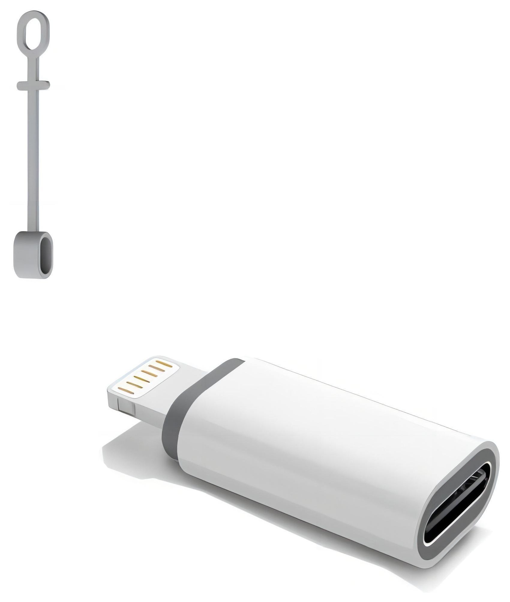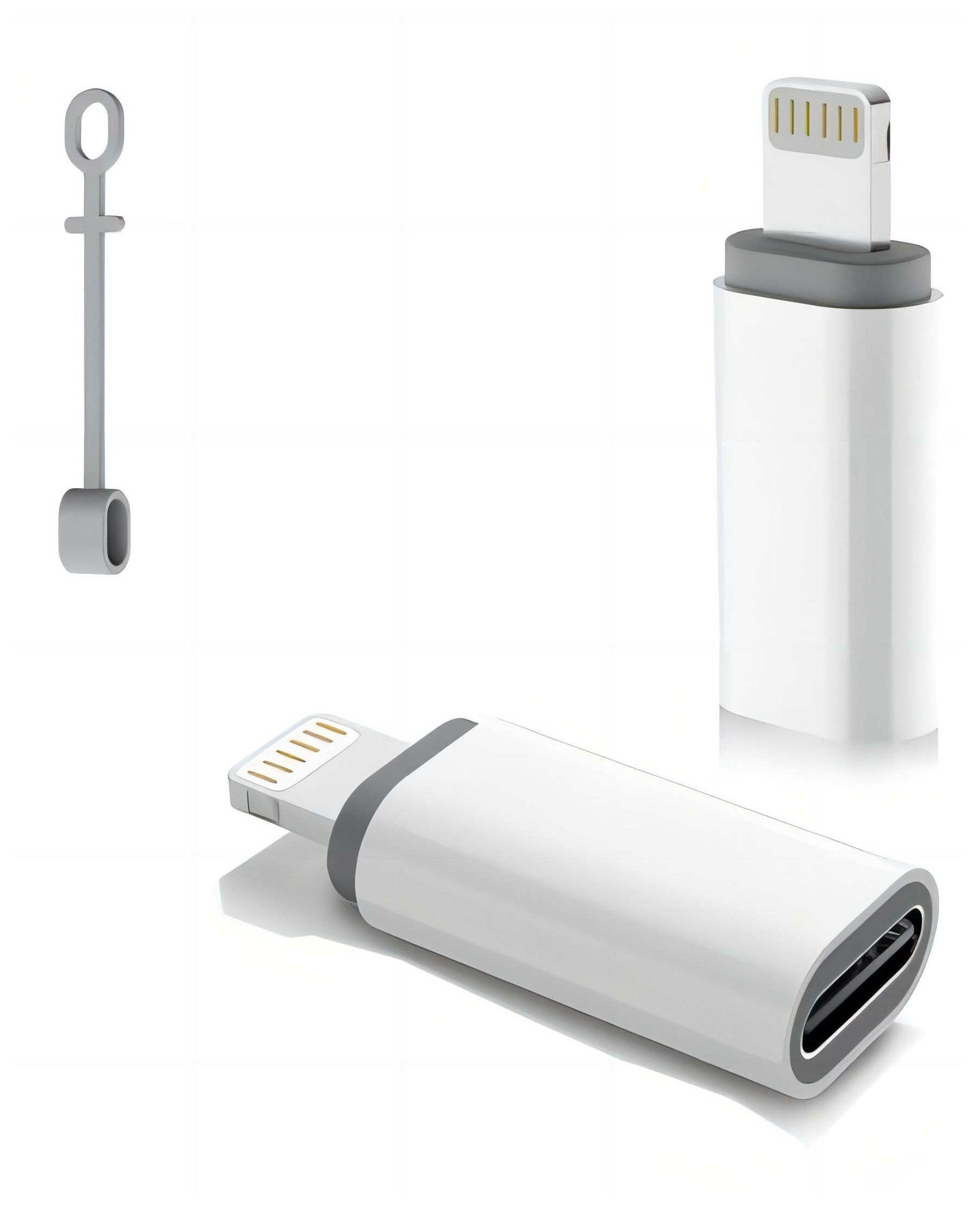 USB Typ-C Buchse zu Lightning Stecker Adapter. Inklusive Trageschlaufe für Schlüsselanhänger oder Datenkabel. → Adapter immer griffbereit (schützt vor Verlieren)