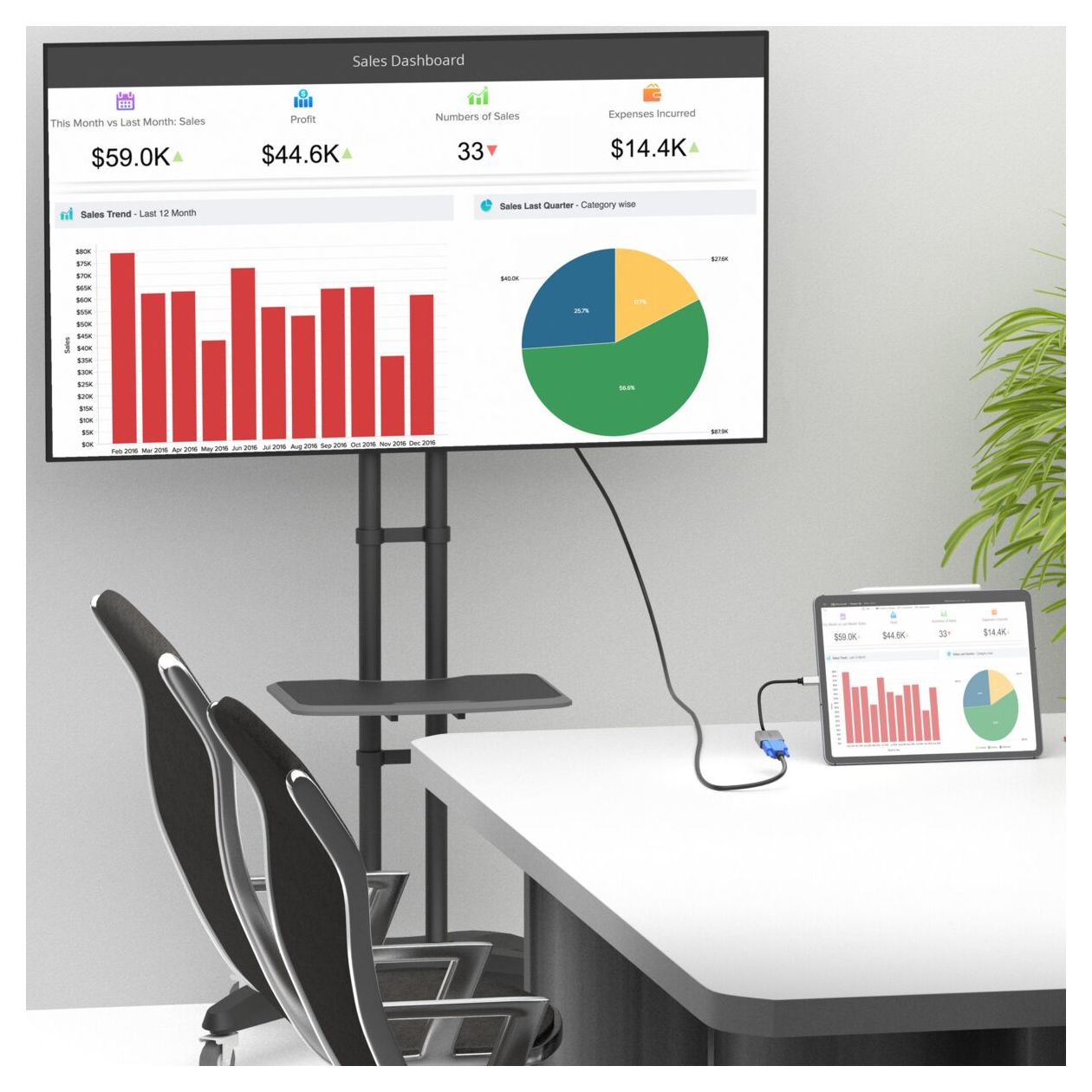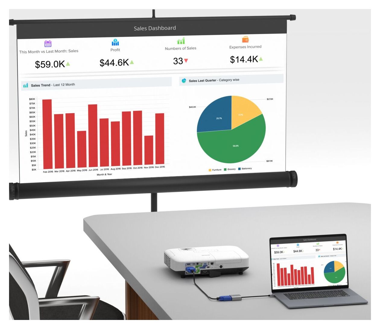Schließen Sie ein MacBook, Chromebook oder Laptop an einen Beamer, oder ein iPad an einen Präsentationsbildschirm mit VGA-Eingang an.