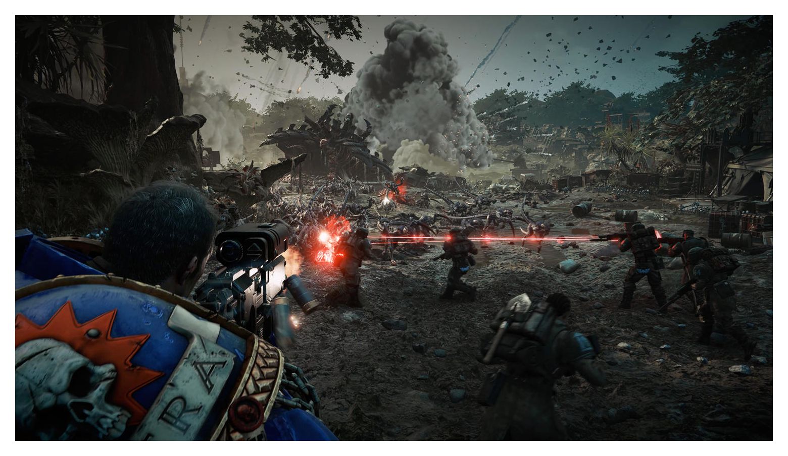 Dein Handwerk ist der Tod. Verkörpere die übermenschlichen Fähigkeiten und Brutalität der Space Marines, der besten Krieger des Imperators. Halte in epischen Schlachten auf weit entfernten Planeten die Schrecken der Galaxie in Schach und setze tödliche Fähigkeiten und verheerende Waffen ein. Enthülle dunkle Geheimnisse, um die ewige Nacht zurückzudrängen und beweise deine absolute Treue zur Menschheit. Vernichte die Tyranidenschwärme. Verteidige die Menschheit. Features: Eliminiere als legendärer Space Marine Titus in einer spektakulären neuen Kampagne gnadenlose Tyranidenschwärme. Spiele allein oder mit bis zu 2 Freunden im Koop-Modus für 3 Spieler. Erlebe packende, blutige und rasante Third-Person-Action mit Hunderten von Gegnern auf dem Bildschirm. von den Entwicklern des Koop-Shooter-Hits World War Z. Verteidige als Space Marine in brutalen und immer neu spielbaren PvEMissionen für bis zu 3 Spieler das Imperium. Wähle aus 6 Klassen und schalte neue Fähigkeiten und kosmetische Gegenstände frei. Führe in grausamen 6v6-PvP-Kämpfen ewigen Krieg gegen deine Feinde und lasse deine Fraktion im Ruhm erstrahlen. In der Erstauflage ist zusätzlich zum Spiel noch ein Download-Code für "Macragge's-Chosen" DLC enthalten.