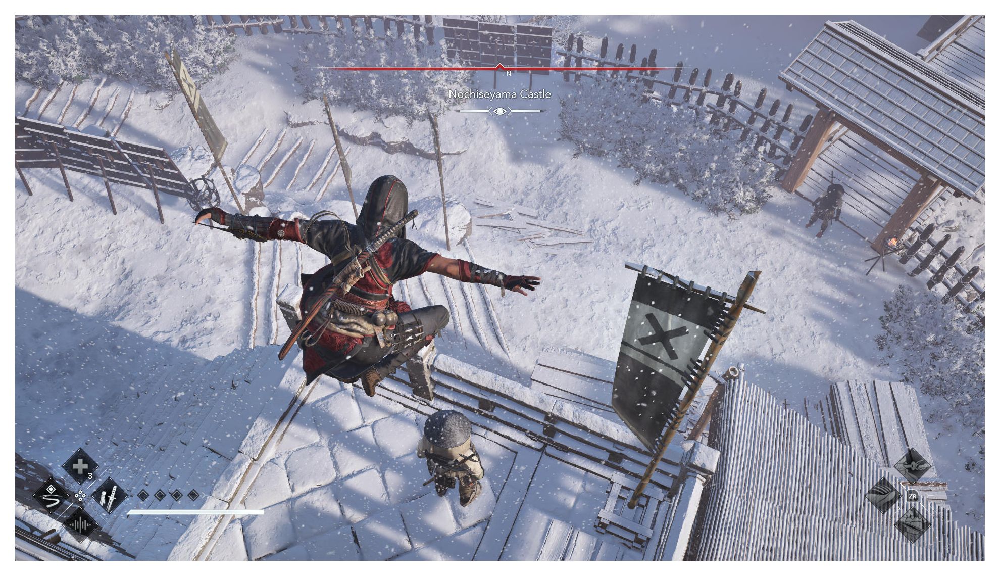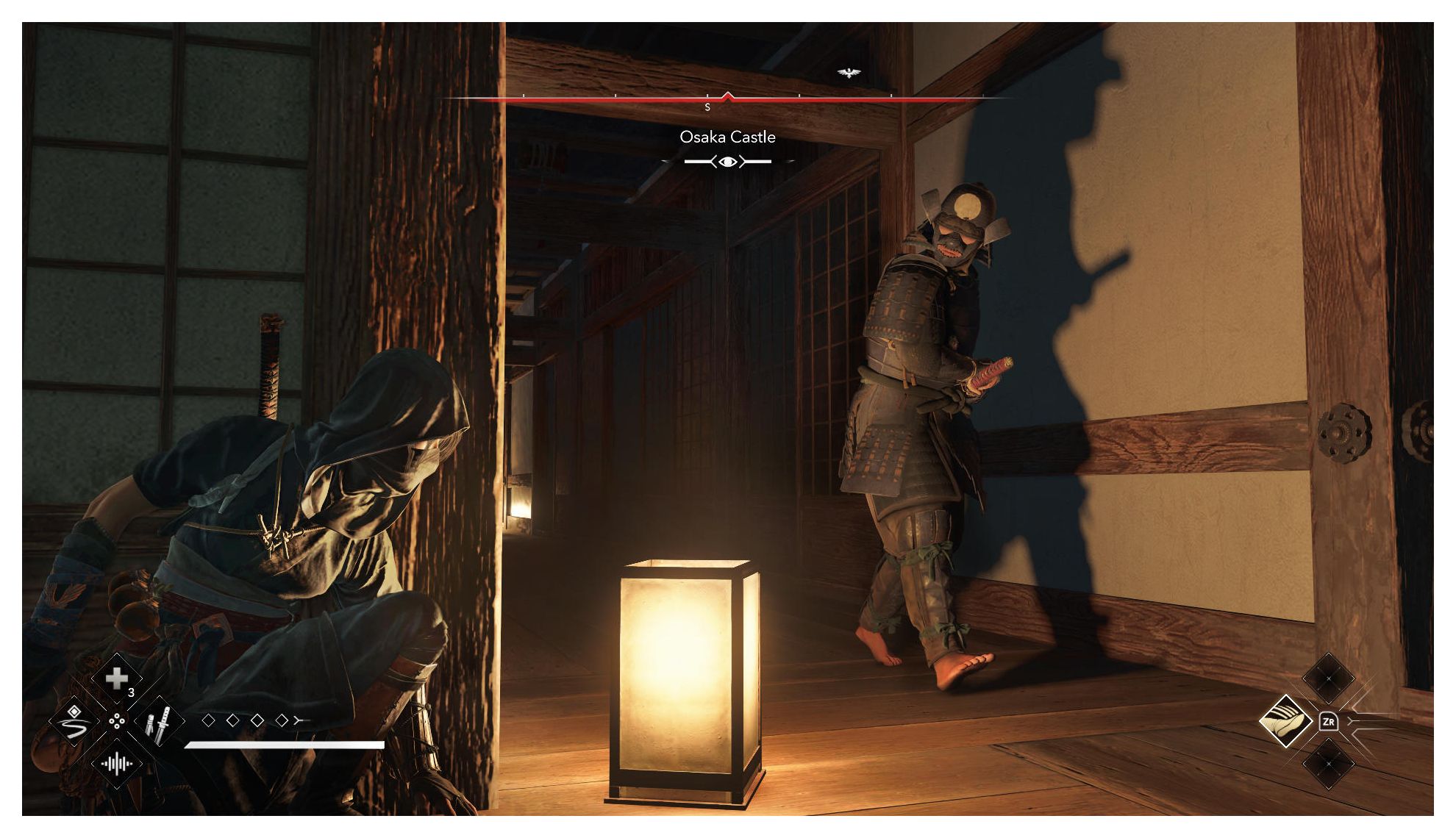 Naoe - Die Meisterin der Schatten: Schleiche lautlos durch Burgen, nutze Licht, Geräusche und Schatten zu deinem Vorteil. Setze Shuriken, Rauchbomben und deine versteckte Klinge ein, um lautlose Eliminierungen durchzuführen.