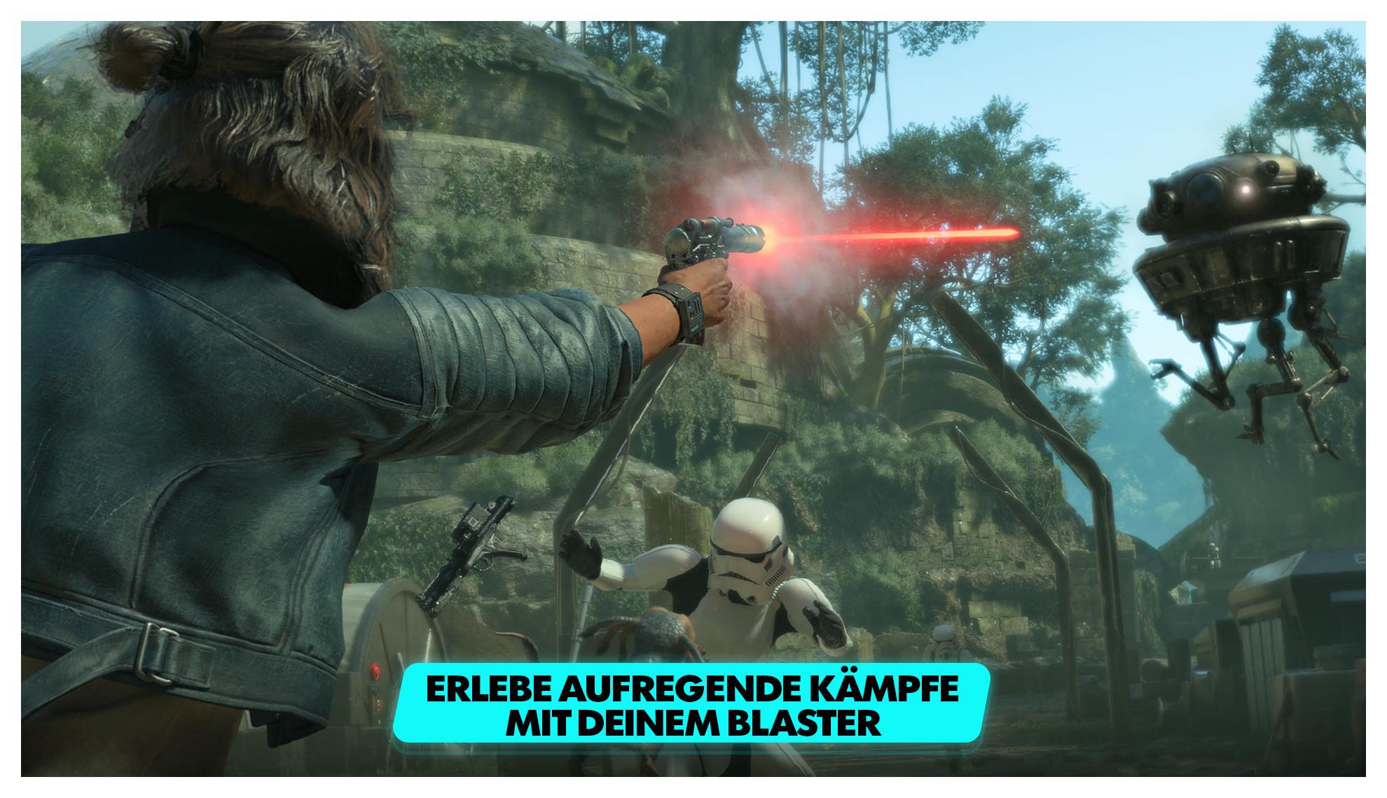 Erlebe Star Wars™ zum allerersten Mal in einem Spiel mit offener Welt und entdecke einzigartige Orte in der ganzen Galaxis, sowohl altbekannte als auch neue. Riskiere als Halunkin Kay Vess auf der Suche nach Freiheit und einem neuen Leben alles. Kämpfe, stiehl und trickse dich durch die Unterwelt, während du es mit den Verbrechersyndikaten der Galaxis aufnimmst. Wenn du das Risiko nicht scheust, ist die Galaxis voller Gelegenheiten. ENTDECKE EINE GALAXIS VOLLER GELEGENHEITEN Erkunde einzigartige Schauplätze mit belebten Städten und Cantinas. Rase auf deinem Gleiter über weite Landschaften. An jedem Ort gibt es neue Abenteuer, eigene Herausforderungen und verlockende Belohnungen, wenn du das Risiko eingehst. ERLEBE DIE GESCHICHTE EINER ECHTEN HALUNKIN Lebe den gefährlichen Alltag einer Gesetzlosen. Drehe mit Nix an deiner Seite jede Situation zu deinem Vorteil. Kämpfe mit deinem Blaster, überwinde Gegner durch Schleichen und Geräte oder warte auf den richtigen Moment, sie abzulenken und die Oberhand zu gewinnen. BEGIB DICH AUF RISIKOREICHE MISSIONEN Akzeptiere Aufträge mit hohem Risiko und ebenso hohen Belohnungen von den Verbrechersyndikaten der Galaxis. Kämpfe, stiehl und trickse dich durch die Unterwelt, während du es mit den Verbrechersyndikaten der Galaxis aufnimmst. Jede Entscheidung, die du triffst, hat Einfluss auf deinen sich ständig ändernden Ruf. SCHWING DICH IN DEN PILOTENSITZ Steuere dein Schiff, die Bahnbrecher, in spannenden Raumkämpfen mit dem Imperium und anderen Feinden. Finde und nutze die richtigen Gelegenheiten, um zu verfolgen, auszuweichen, anzugreifen und dich durchzusetzen.
