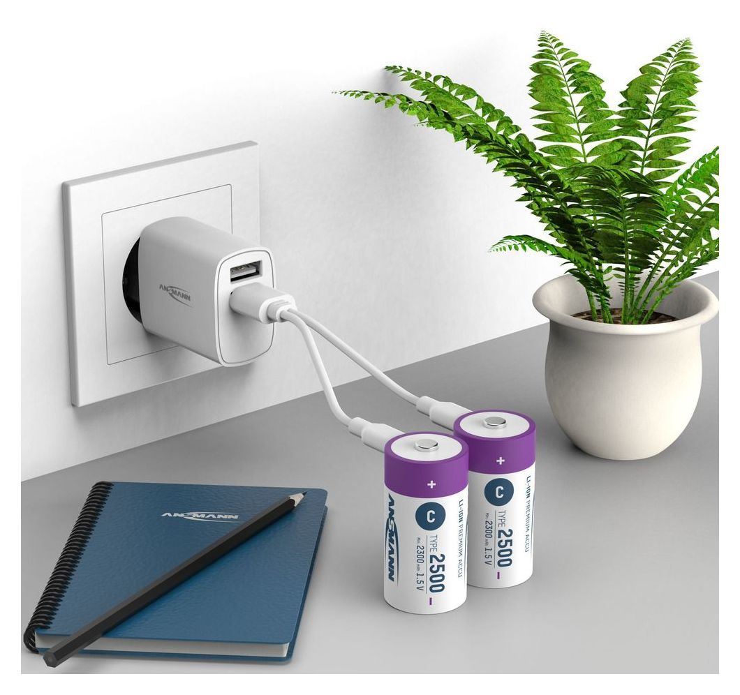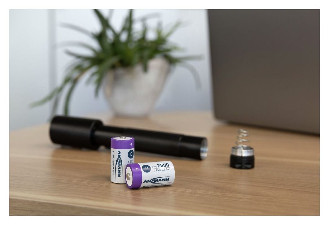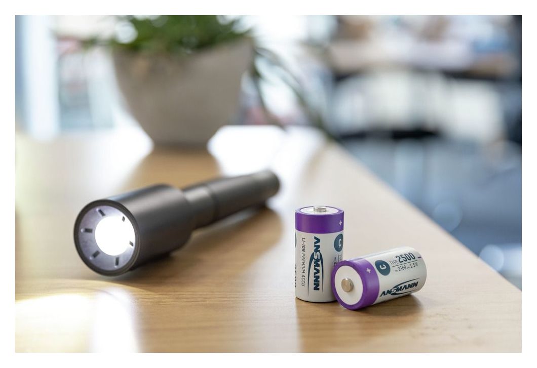Der hochwertige Lithium-Ionen (Li-Ion) Akku von ANSMANN ist der ideale Ersatz für 1,5V Alkaline Einwegbatterien oder aufladbare 1,2 V NiMH Akkus. Während manche batteriebetriebene Geräte mit der niedrigeren Ausgangsspannung von NiMH Akkus Probleme haben, ist der ANSMANN 1,5 V Li-Ion Akku voll kompatibel mit Alkaline Batterien. Neben der Wiederaufladbarkeit punktet er auch, dank eingebauter Elektronik, mit einer konstanten Ausgangsspannung von 1,5V über 95% der Betriebszeit. Hat der Akku noch eine Restkapazität von ca. 5%, wird die Ausgangsspannung auf 1,1V reduziert, um dem Anwender zu signalisieren, dass der Akku gewechselt werden sollte. Die konstante Ausgangsspannung des ANSMANN 1,5V Li-Ion Akkus bewirkt zum Beispiel, dass eine Taschenlampe immer gleichmäßig hell leuchtet, oder ein Milchaufschäumer, elektrisches Spielzeug oder ein Rasierer immer mit gleichmäßiger, voller Power laufen.