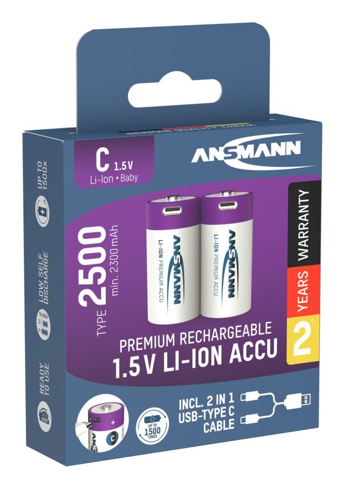 Der ANSMANN Baby C Li-Ion Akku ist extrem langlebig und kann auch bei harten Einsatzbedingungen bis zu 1200 mal aufgeladen werden. Durch die sehr geringe Selbstentladung hält der Akku auch bei Nichtgebrauch seine Energie über einen langen Zeitraum. Zudem ist das Gewicht der Li-Ion Zelle im Vergleich zu herkömmlichen Akku-Technologien (z.B. NiMH/PB) bei gleicher Leistung weitaus geringer.