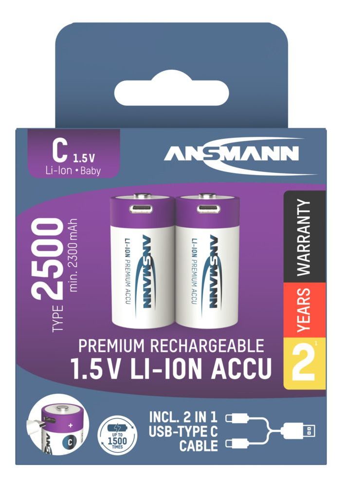 Li-Ion, Baby C Typ 2500 (min. 2300 mAh), 2er Papierblister