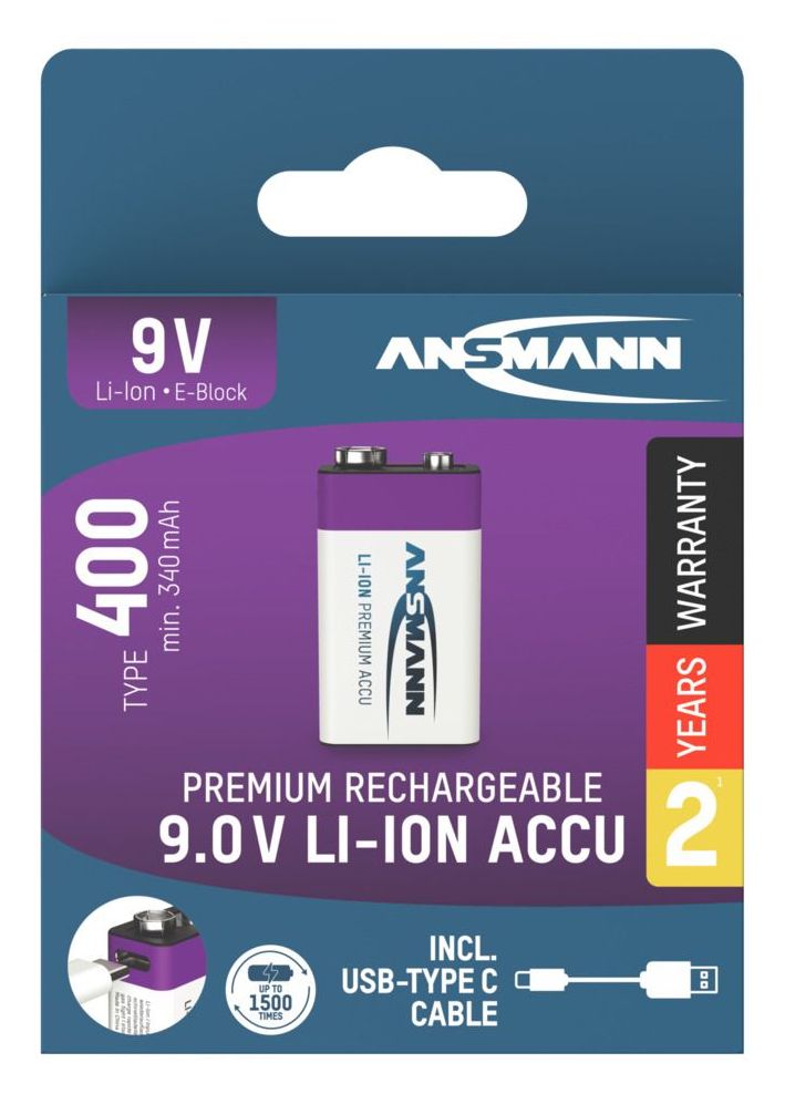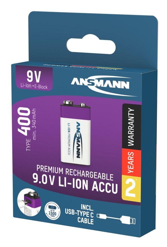 - Hochwertige ANSMANN Lithium Batterie 9V E-Block mit Schutzbeschaltung