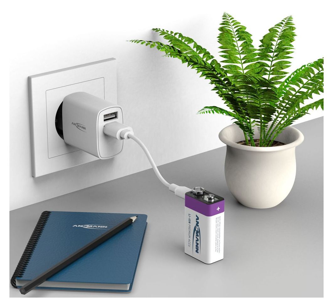 Der hochwertige Lithium-Ionen (Li-Ion) Akku von ANSMANN ist der ideale Ersatz für Einwegbatterien, da die Ausgangsspannung gegenüber herkömmlichen NiMH Akkus (8,4 V) über eine höhere Spannung verfügt. Die integrierte Elektronik regelt die Spannung konstant auf 9 V über den kompletten Einsatzzeitraum und sorgt dafür, dass Ihr Endgerät gleichmäßig mit Energie versorgt wird. Zudem ist der Akku über einen großen Temperaturbereich von -20°C bis +60°C einsetzbar. Somit passt der ANSMANN Li-Ion Akku perfekt zu Geräten welche üblicherweise mit Einwegbatterien betrieben werden, wie z.B. Fernbedienungen, Microfone, Messgeräte (Multimeter), Spielzeuge, Uhren, medizinische Geräte, etc.