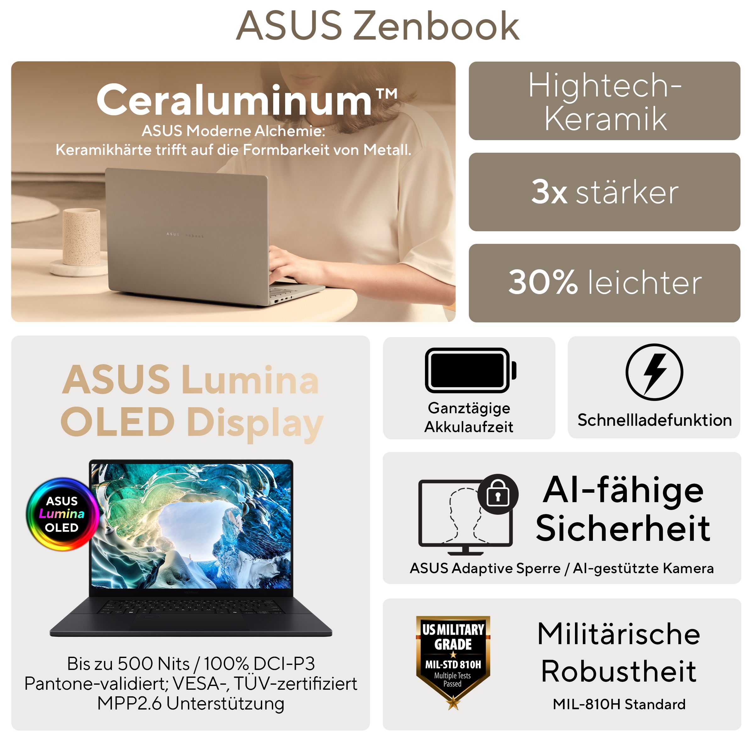 Zenbook A14 UX3407NA-QD140W WUXGA Notebook 35,6 cm (14 Zoll) 1920 x 1200 Pixel 32 GB Ram 1 TB SSD Windows 11 Home Qualcomm Snapdragon max. 4 GHz intern (Grau)