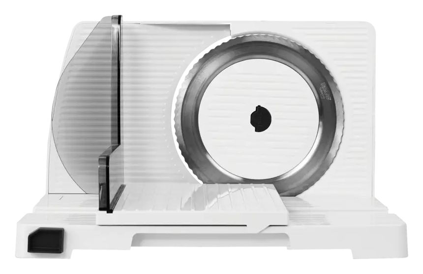 Elektro-Allesschneider, kippbar, Messerausführung Wellenschliff, Durchmesser: 170 mm, Schnittstärkeneinstellung bis 15 mm, Schnittlänge bis 20 cm, Messerabdeckung, Energiesparmotor, 65 Watt Leistung