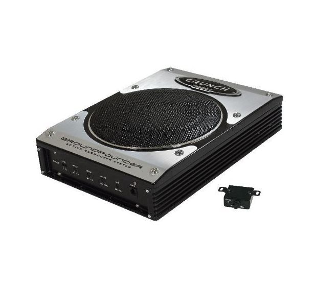 Ganz neu in der GROUNPOUNDER Familie, ist das aktive Subwoofer-System GP800 mit echtem Verstärker-Kühlkörper und integriertem 20 cm Woofer. Das System ist dank den schlanken Abmessungen überall installierbar und ist mit einer Bass-Remote ausgestattet.