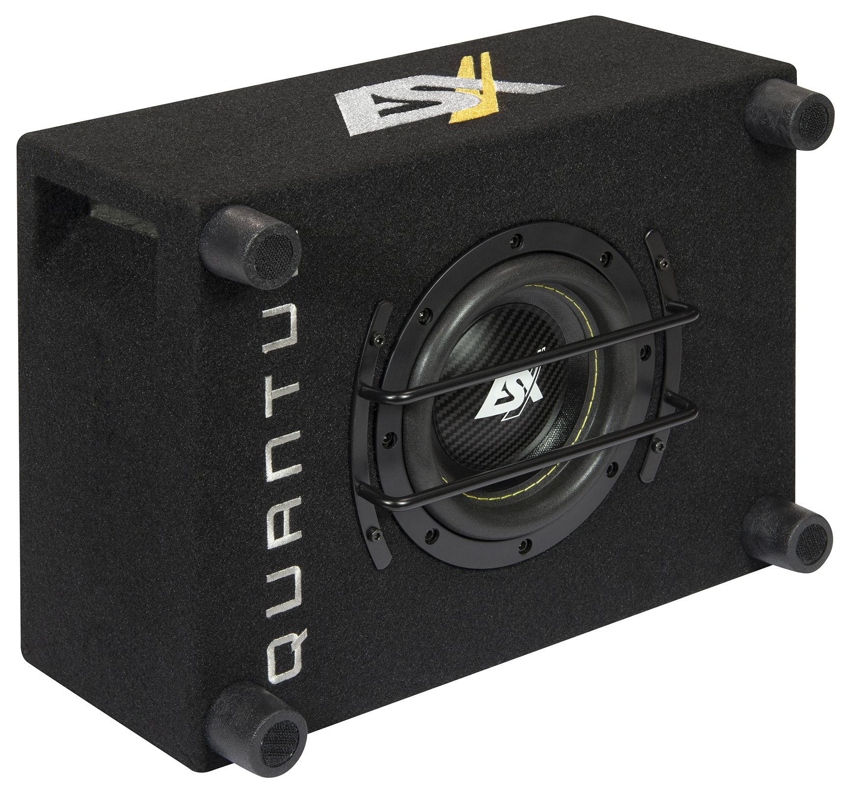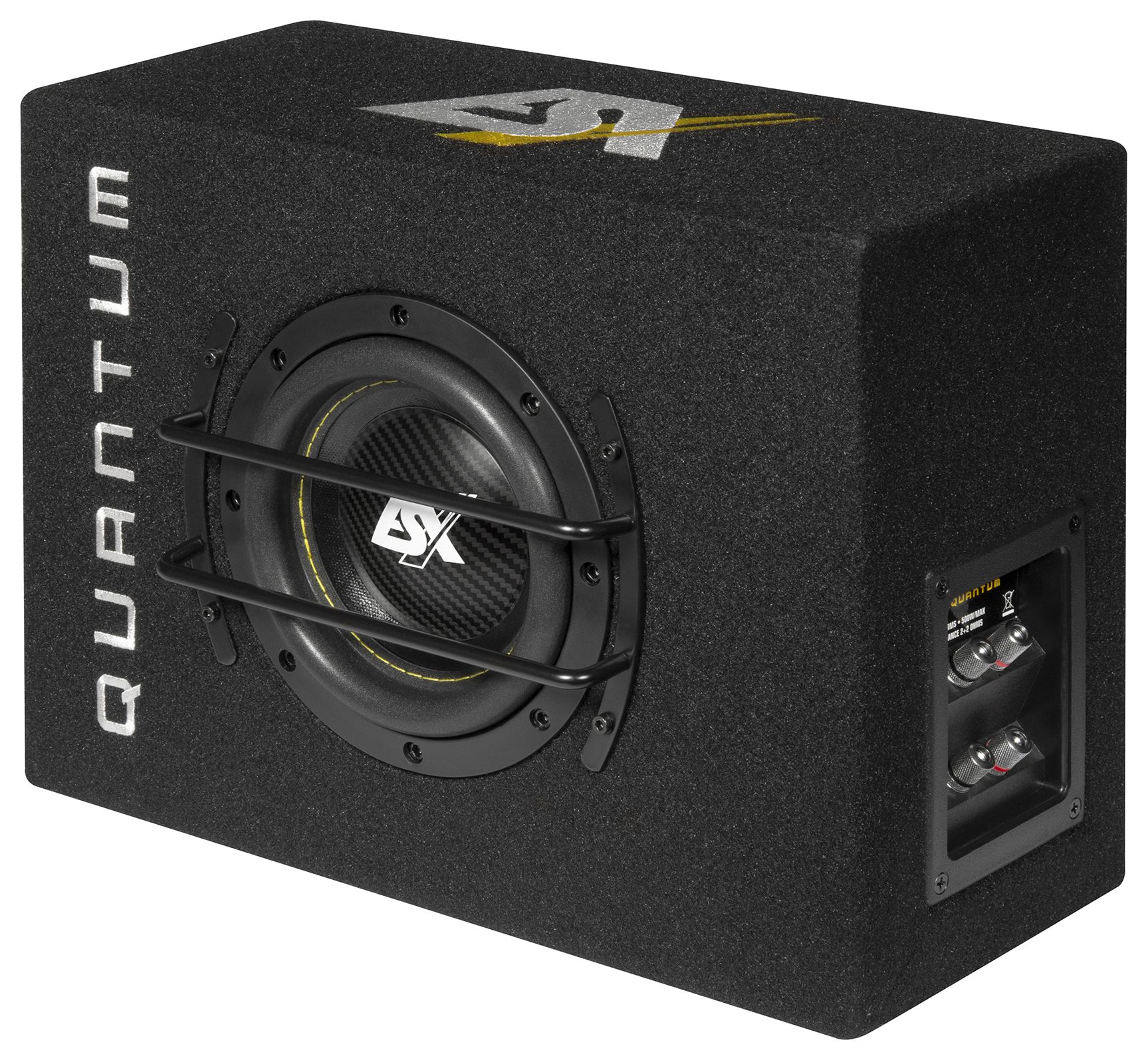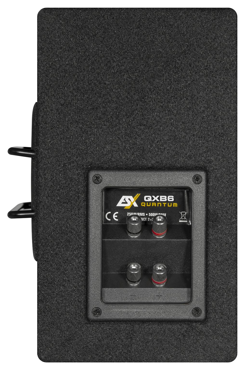 Die QUANTUM QXB Bassreflex-Gehäuse bestechen durch eine sehr kompakte Bauweise. Mit einer Anschluss-Impedanz von jeweils 2+2 Ω kann der Subwoofer auch in 4 Ω oder gar in 1 Ω betrieben werden, um das Maximum aus dem Verstärker herauszuholen. Dank der großen Schwingspulen (50 mm bei QXB6 und 64 mm bei QXB8 und dem neuen QXB10 Modell) sind diese Subwoofer neben dynamischen Basspegeln auch für hohe Leistungen ausgelegt und können mit kräftigeren Amps betrieben werden. Durch die flache Konstruktion finden die neuen QXB Gehäuse in fast jedem Fahrzeug den passenden Platz. Mit einer Gehäusehöhe von nur 16 cm kann die QXB6 Box sogar in einem doppelten Boden des Kofferraums Platz finden oder z.B. hinter dem Sitz. Durch die mitgelieferten Schutzgitter werden in allen Modellen die Tieftöner optimal geschützt. Optional können bei den QXB6 und QXB8 Boxen auch Standfüße montiert werden, die damit als Downfire-Gehäuse einsetzbar sind. Damit kann die obenliegende Seite als Ablagefläche im Kofferraum dienen, während der Subwoofer nach unten "feuert".
