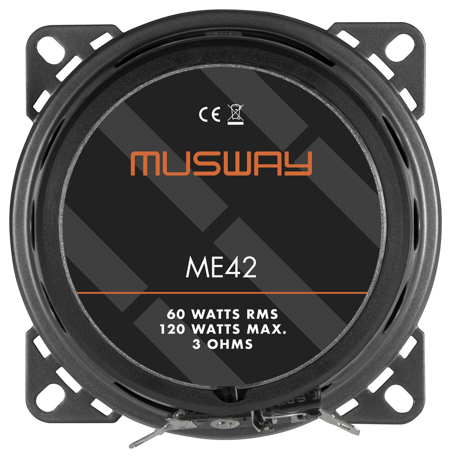 Die ME Lautsprecher sind die Einstiegsmodelle von MUSWAY. Selbst diese sind schon mit kräftigen Magnetantrieben ausgestattet, die unter anderem eine hohe Belastbarkeit mit bis zu 200 Watt Musikleistung ermöglichen. Polypropylen-Membranen mit Gummisicken garantieren einen tiefen und kräftigen Bass und eine sehr hohe Langlebigkeit. Für ein optimales Abstrahlverhalten wurden in die Basslautsprecher von ME6.2C, ME5.2C und ME6.2W Phase-Plugs eingesetzt. Der 25 mm Gewebe-Neodym-Hochtöner hat nicht nur hervorragende Klangeigenschaften, sondern ist auch noch besonders flexibel einsetzbar, da der äußere Plastikring abnehmbar ist und sich dadurch der Durchmesser auf kompakte 43,5 mm verringert – passend für das Spiegeldreieck oder die A-Säule. Für einfache Verbaubarkeit sorgen die für den Hochton- und Basszweig getrennten Inline-Frequenzweichen, die kaum Platz beanspruchen.