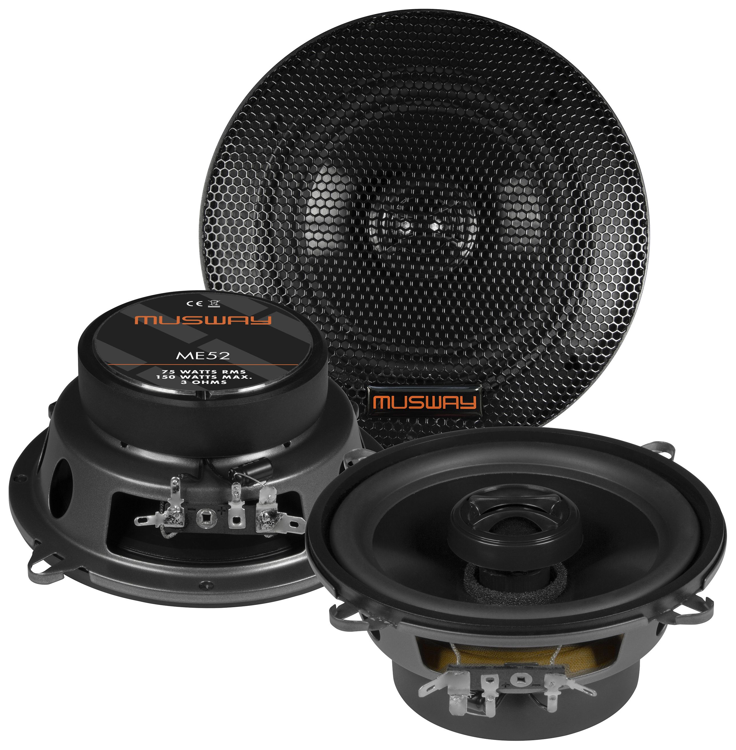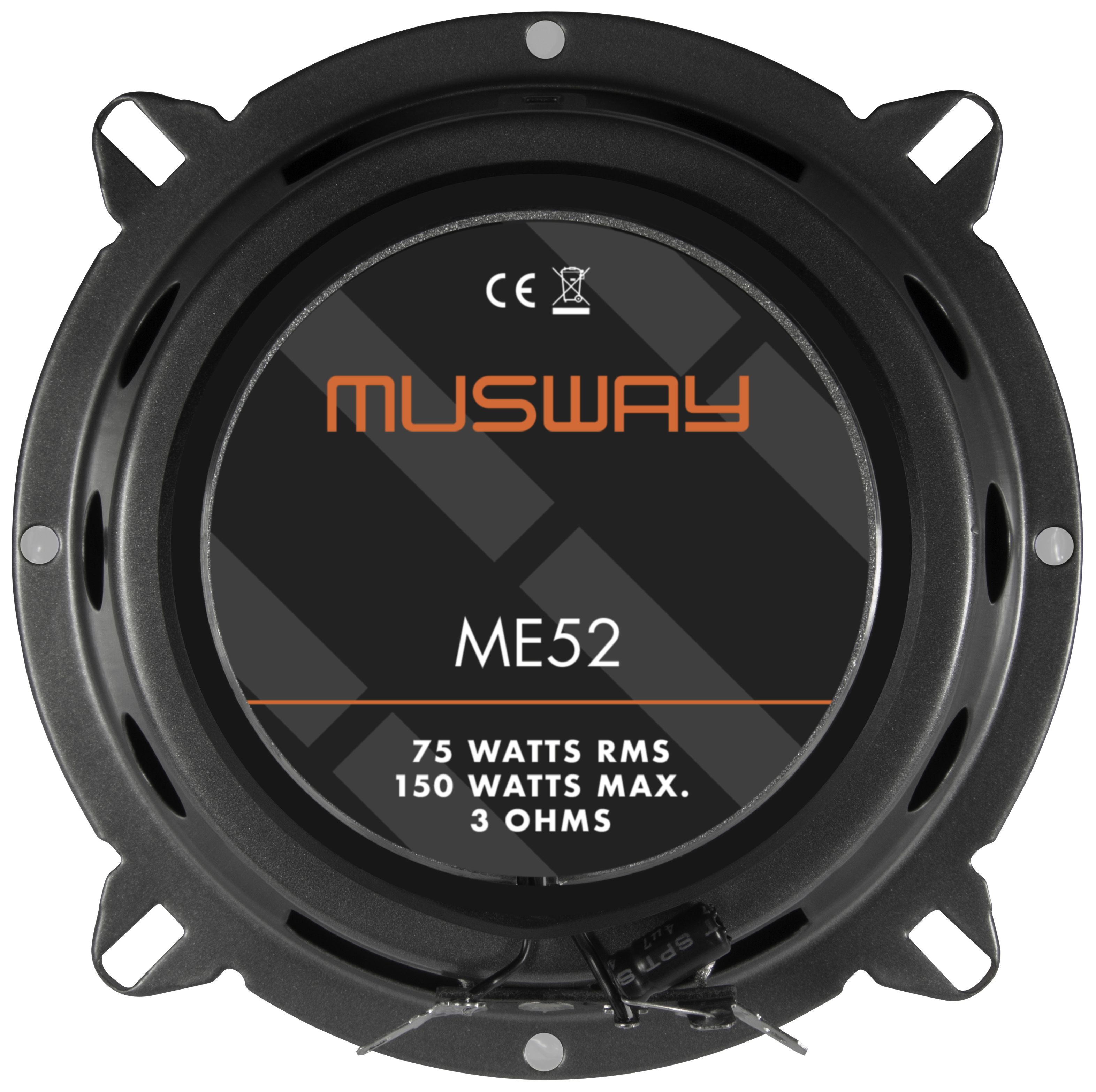 Die ME Lautsprecher sind die Einstiegsmodelle von MUSWAY. Selbst diese sind schon mit kräftigen Magnetantrieben ausgestattet, die unter anderem eine hohe Belastbarkeit mit bis zu 200 Watt Musikleistung ermöglichen. Polypropylen-Membranen mit Gummisicken garantieren einen tiefen und kräftigen Bass und eine sehr hohe Langlebigkeit. Für ein optimales Abstrahlverhalten wurden in die Basslautsprecher von ME6.2C, ME5.2C und ME6.2W Phase-Plugs eingesetzt. Der 25 mm Gewebe-Neodym-Hochtöner hat nicht nur hervorragende Klangeigenschaften, sondern ist auch noch besonders flexibel einsetzbar, da der äußere Plastikring abnehmbar ist und sich dadurch der Durchmesser auf kompakte 43,5 mm verringert – passend für das Spiegeldreieck oder die A-Säule. Für einfache Verbaubarkeit sorgen die für den Hochton- und Basszweig getrennten Inline-Frequenzweichen, die kaum Platz beanspruchen.