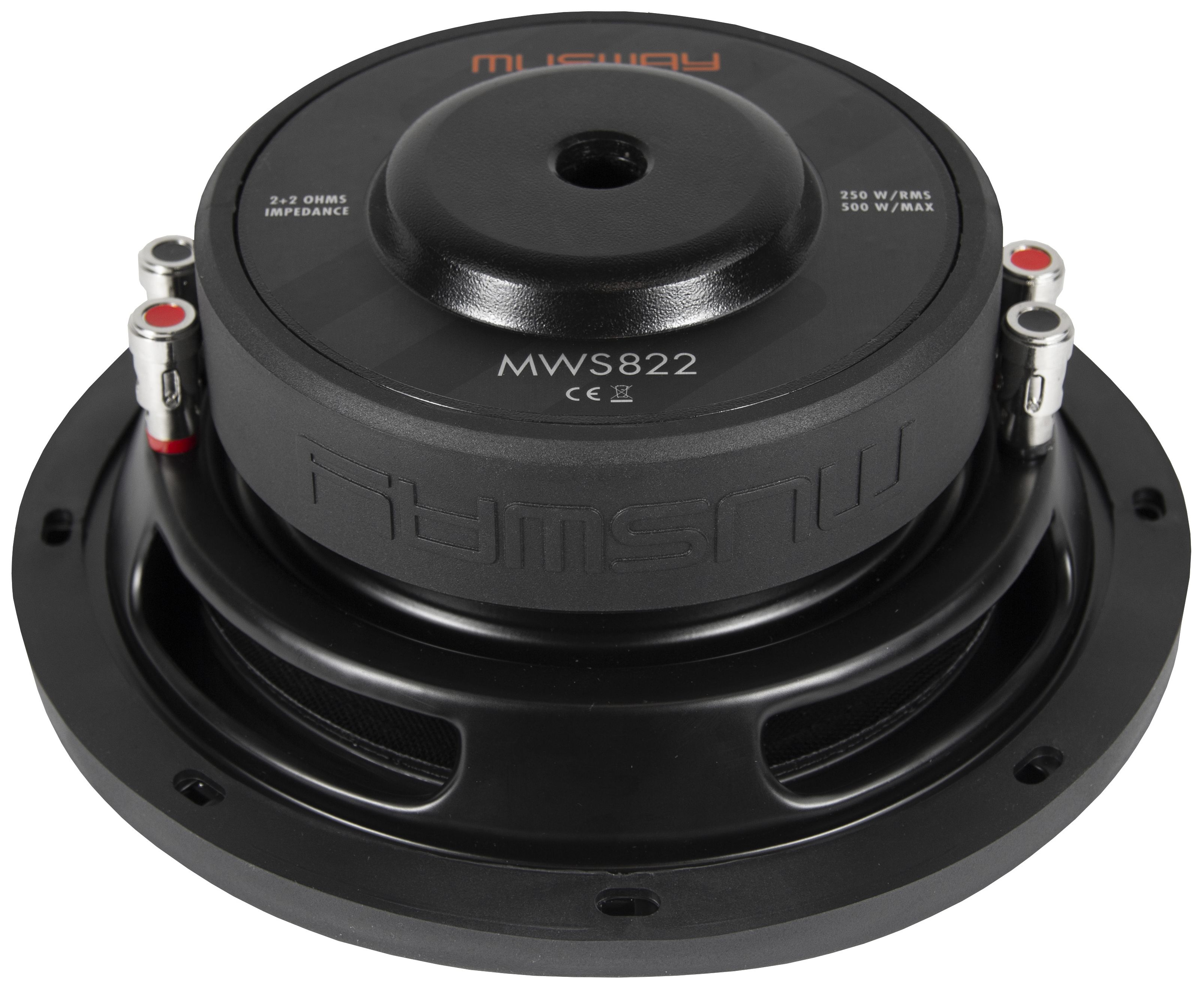 Ein besonders flacher Subwoofer sollte natürlich auch gut klingen und muss robust sein. Daher setzt MUSWAY in den MWS-Modellen spezielle und sehr harte Membranen aus den Verbundstoffen Glasfaser und Karbon ein. Auch an den Antrieben wurde nicht gespart: Die Woofer haben 40 bzw. 45 Unzen schwere Magnete und werden von 50 mm großen 2+2 Ohm Doppelschwingspulen angetrieben, die überdies sehr lang gewickelt sind. Mit Xmax-Werten von +/-15 mm sorgen beide Tieftöner für ordentlich Hub. Mit 250 bzw. 300 Watt RMS sind sie zudem sehr hoch belastbar, so dass auch in dieser Disziplin keinerlei Abstriche gemacht werden müssen.
