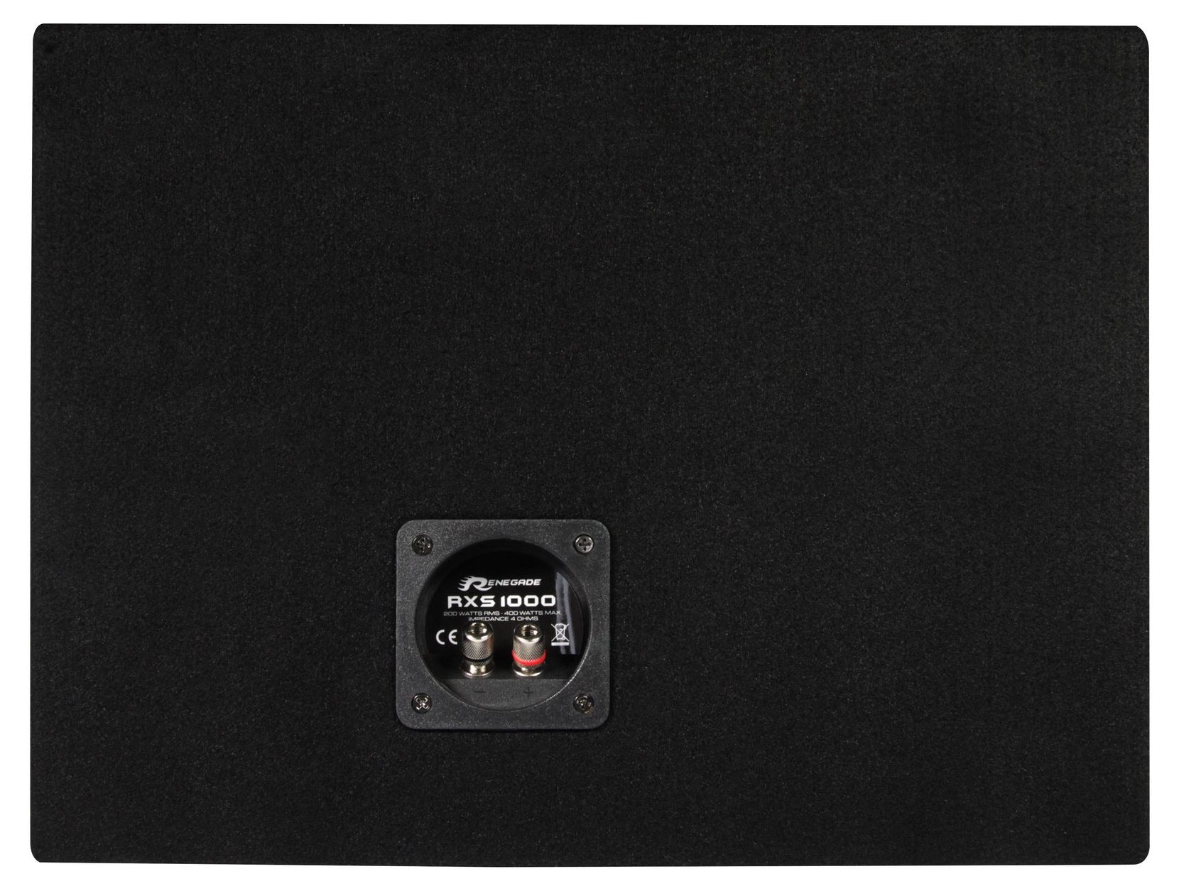 Renegade RXS1000. Produkttyp: Vorgeladener Subwoofer, Subwoofer Effektivwert Energie: 200 W, Gesamtleistung des Subwoofers: 400 W. Breite: 420 mm, Tiefe: 160 mm, Höhe: 310 mm