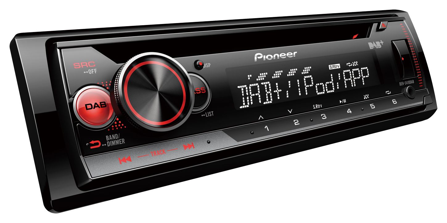 Pioneer DEH-S410DAB. Produktfarbe: Schwarz, DIN Größe: 1 DIN, Maximale Leistung pro Kanal: 50 W. Unterstützte Audioformate: AAC, MP3, WMA, WMV. Display-Typ: LCD, Textzeilen: 1 Zeilen. Unterstützte Bänder: DAB, DAB+