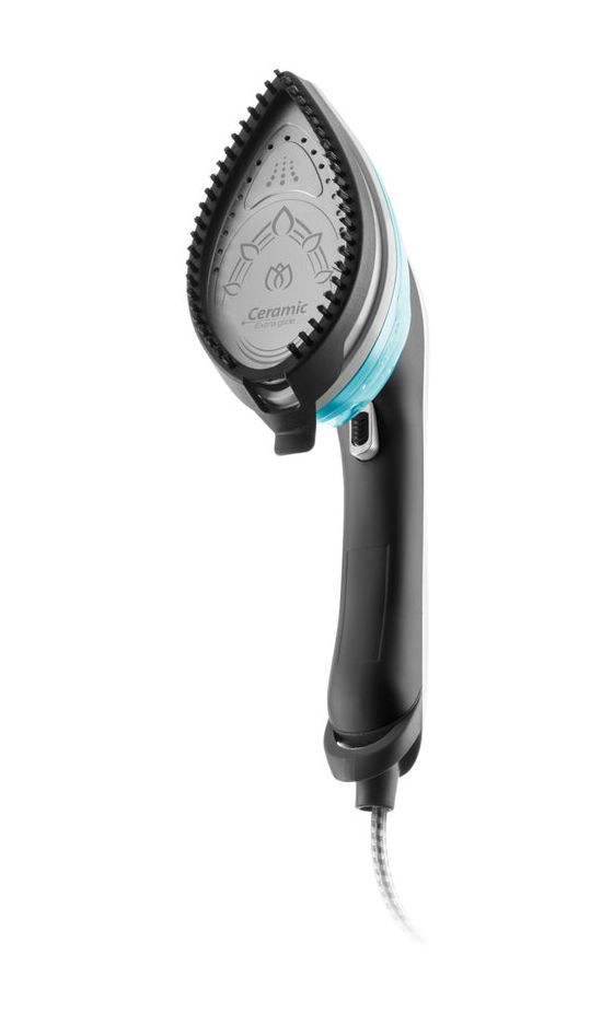 Dank seines einzigartigen Designs und der integrierten Pumpe, können Sie den Steamer aber auch als klassisches Dampfbügeleisen verwenden. Dieses ist kompakt und leicht (1 kg), aber dennoch sehr leistungsstark.