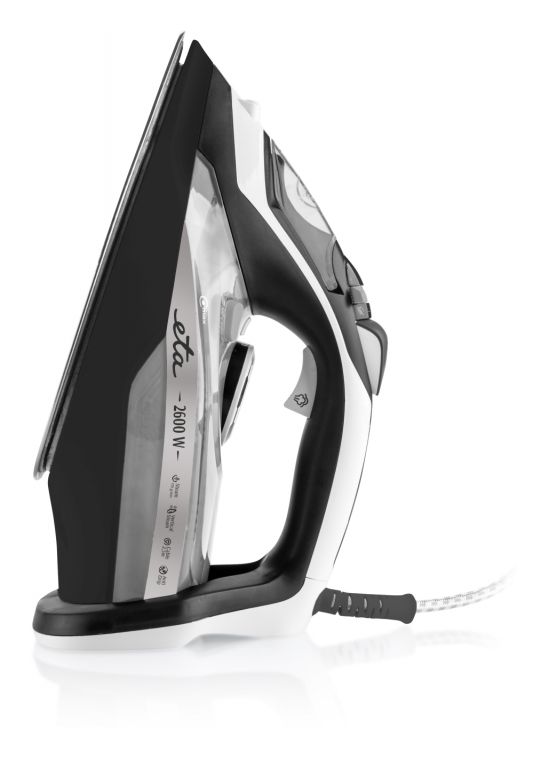 Eta Victory. Typ: Trocken- & Dampfbügeleisen, Material Bügelsohle: Careeza-Sohle, Kabellänge: 3 m. Bügeleisen-Wattleistung: 2600 W. Breite: 320 mm, Tiefe: 135 mm, Höhe: 170 mm. Verpackungsbreite: 330 mm, Verpackungstiefe: 155 mm, Verpackungshöhe: 190 mm