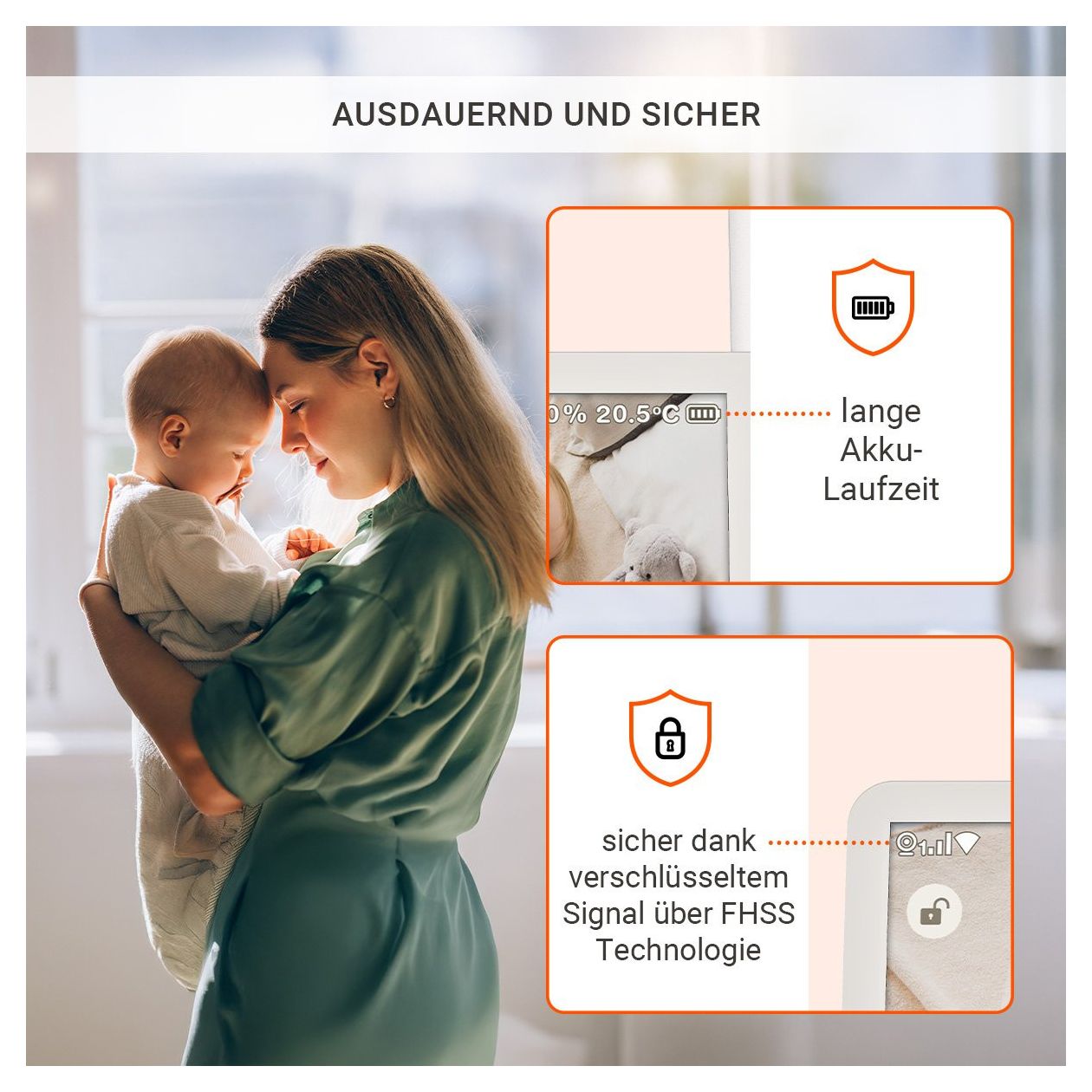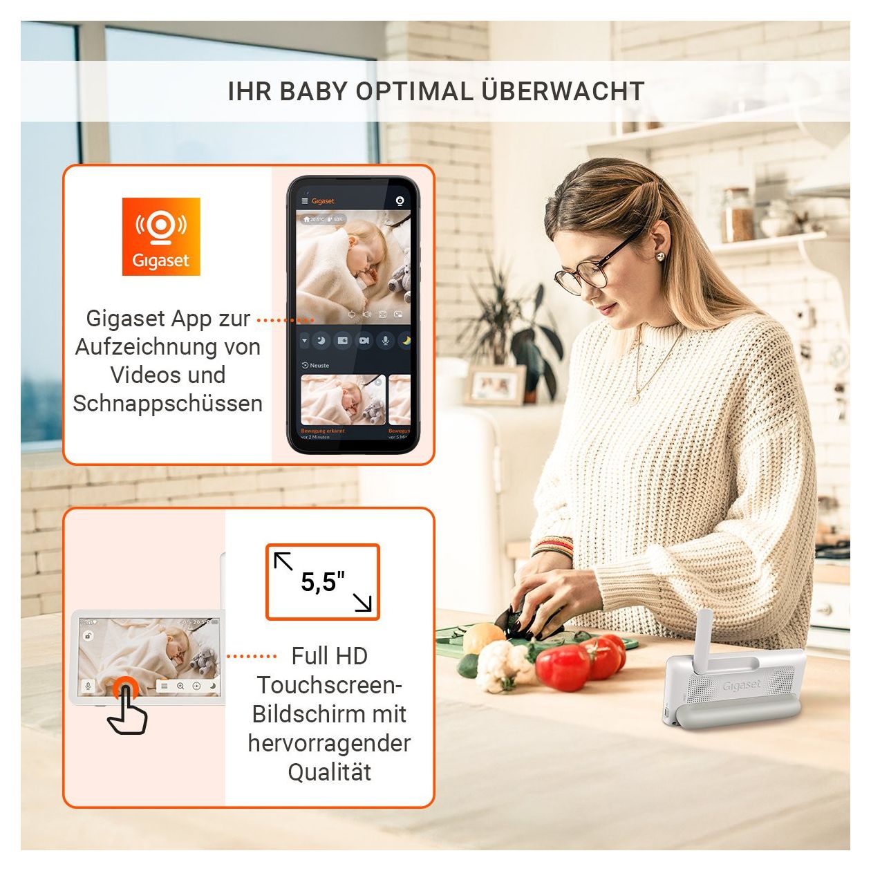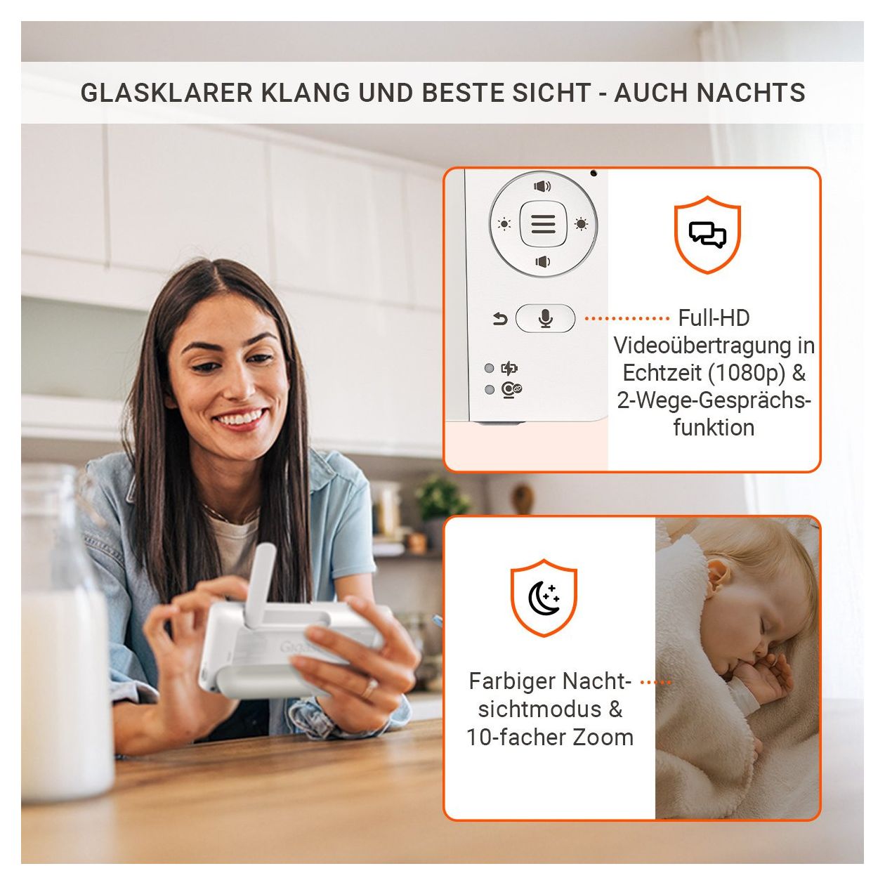Das 5,5'' Full-HD-Display präsentiert Ihnen gestochen scharfe Bilder in brillanter 1080p-Qualität, sodass jedes Lächeln und jeder zarte Ausdruck Ihres Babys in beeindruckender Detailtreue erfasst wird. Mit der intuitiven Touchscreen-Steuerung navigieren Sie kinderleicht durch die Funktionen und passen die Einstellungen direkt am Gerät an. Darüber hinaus garantiert die Full-HD Videoübertragung in Echtzeit, dass Sie jederzeit in den unmittelbaren Austausch mit Ihrem Baby treten können – als wären Sie direkt neben ihm.