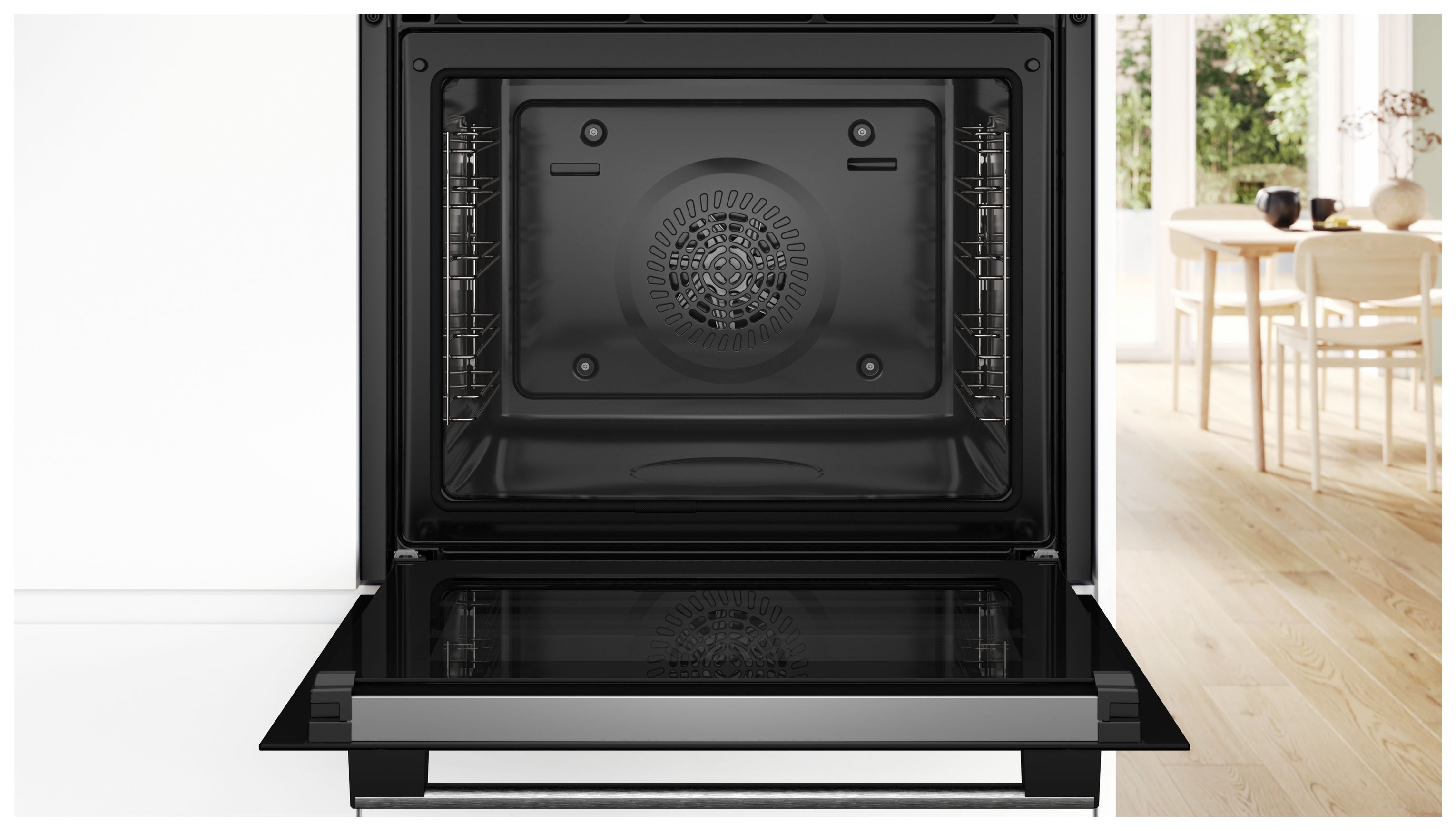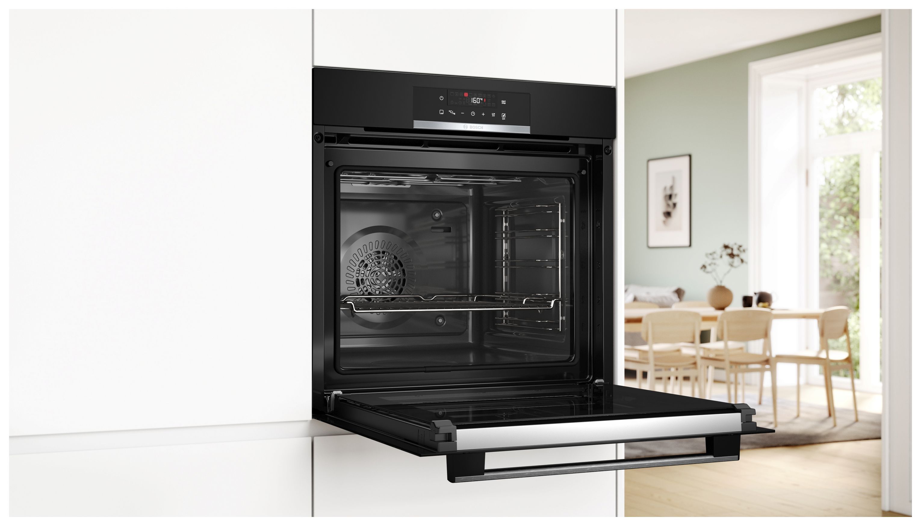 Durch das in dem HBA171BB3 integrierte AutoClean-System erübrigt sich das aufwändige Entfernen von Rückständen mit aggressiven Backofensprays. Mit einem beeindruckenden Garraumvolumen von 71 Litern und einer LED-Innenbeleuchtung sorgt der Bosch iQ700 für perfekte Kochbedingungen bei jedem Gebrauch. Dank des hochwertigen Glastürmaterials bleibt die Außentemperatur des Ofens konstant niedrig, was für zusätzliche Sicherheit bei der Verwendung sorgt.