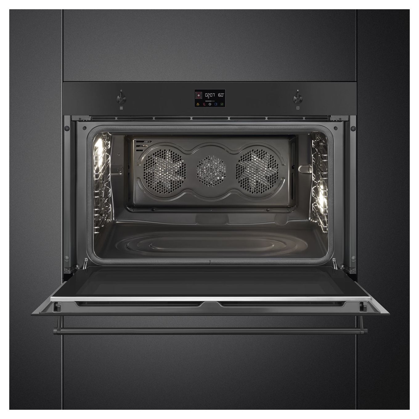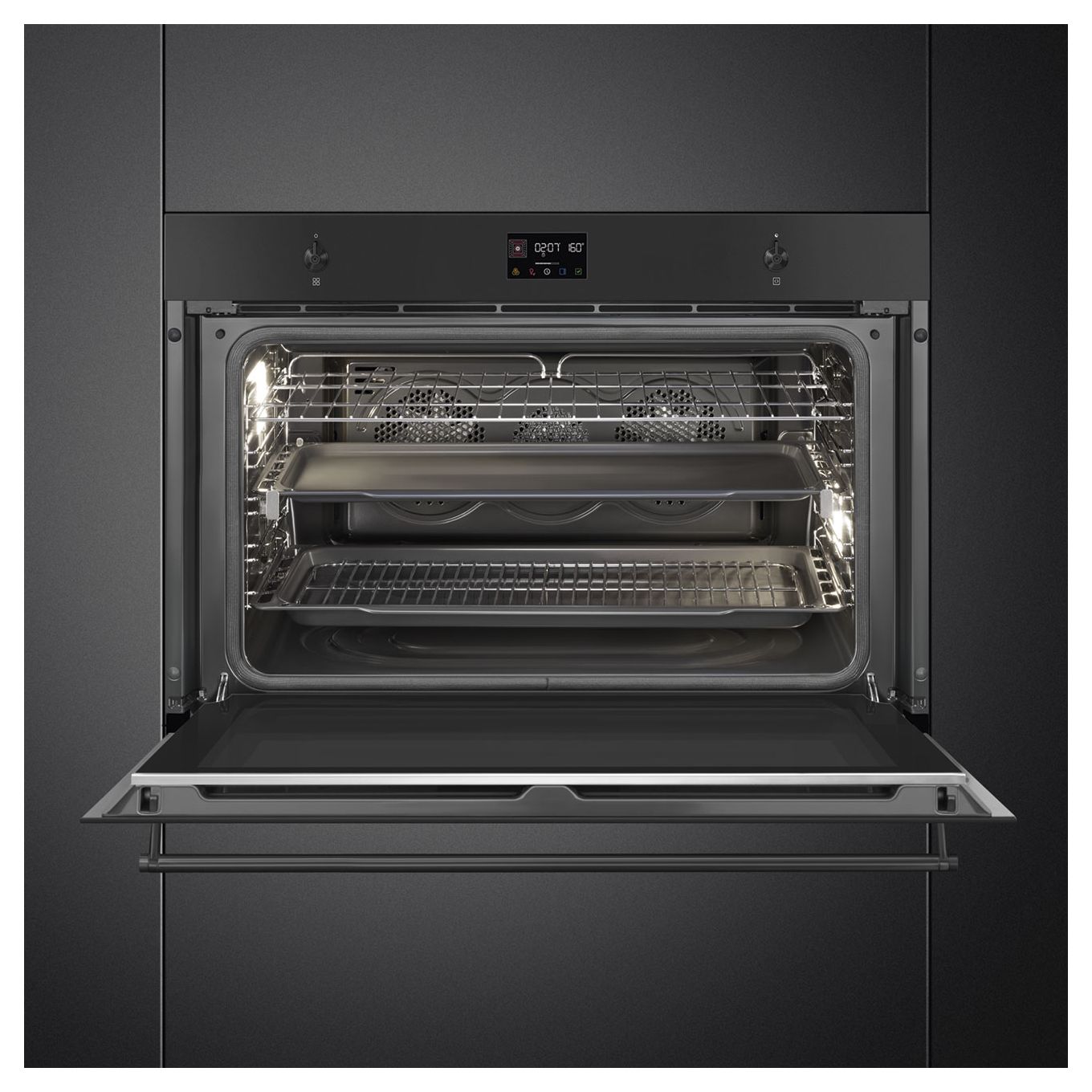 Dank seiner Abmessungen von 571 mm Tiefe, 896 mm Breite und 595 mm Höhe, bietet der Smeg SFP9302TN Backofen einen großzügigen Innenraum, der das Herausnehmen von heißen Gerichten bequem macht.