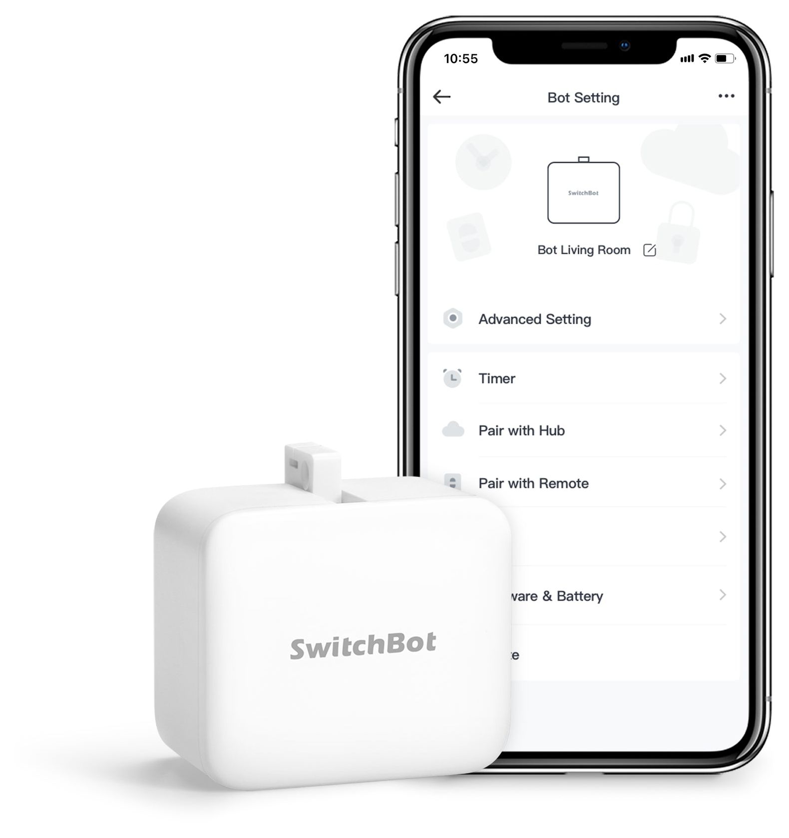 SwitchBot Smart Bot. Produkttyp: Intelligenter Taster, Produktfarbe: Weiß. Netzteiltyp: Akku. Breite: 43 mm, Tiefe: 37 mm, Höhe: 24 mm