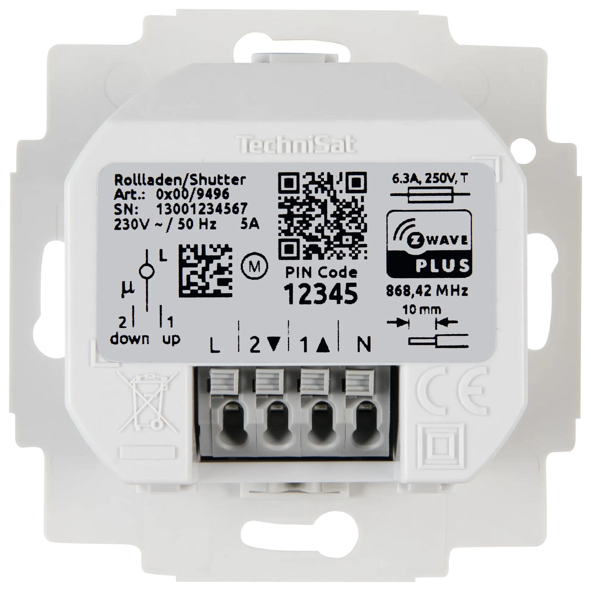 Der Rollladenschalter wird in handelsübliche Unterputz-Dosen (DIN 49073-1) installiert. Der smarte TechniSat Unterputzeinsatz wird dabei einfach gegen den vorhandenen Schaltereinsatz getauscht. Schalterwippen und Abdeckrahmen des vorhandenen Schalters werden weiter verwendet.