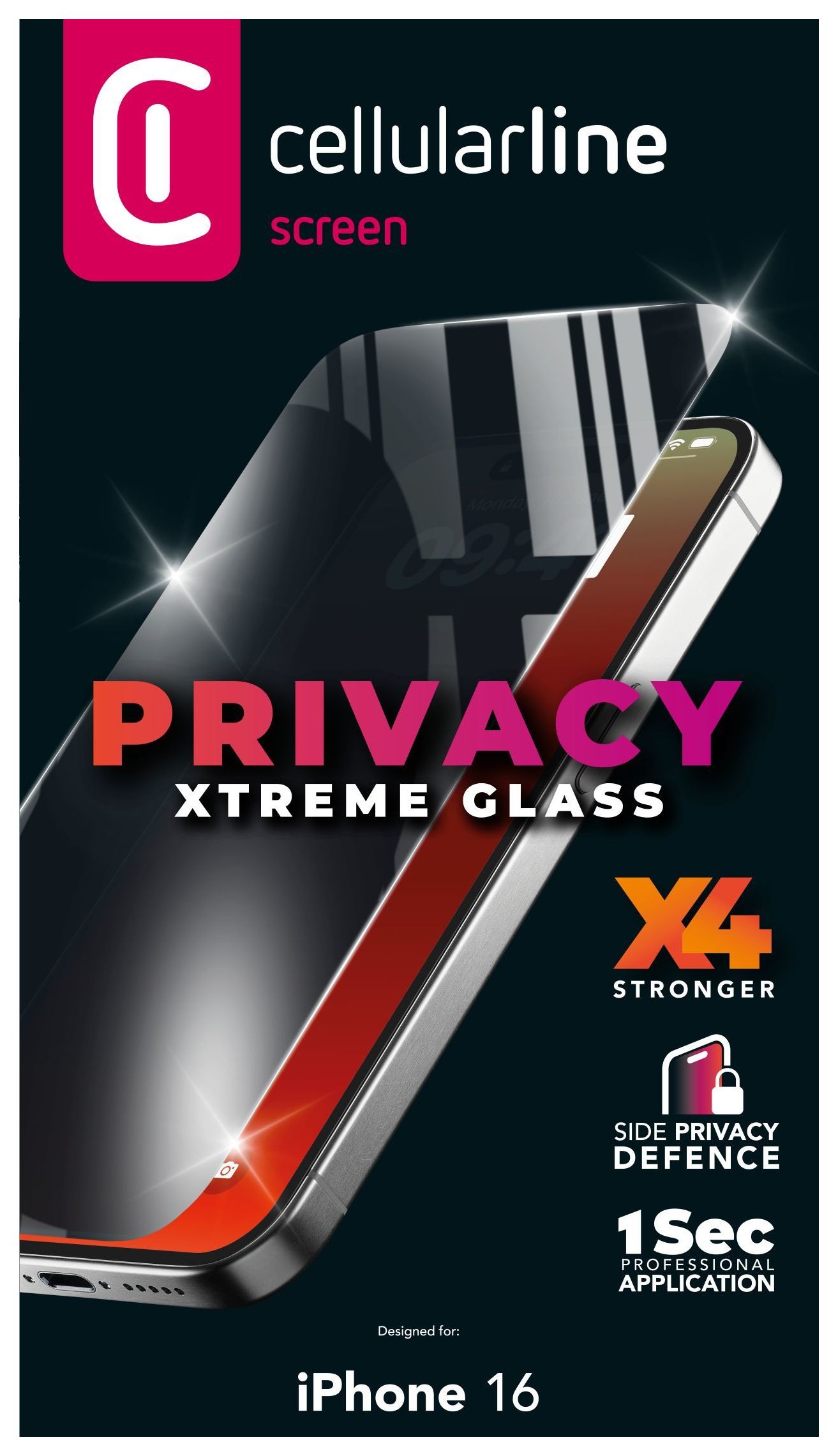 Xtreme Glass Privacy Datenschutz-Bildschirmschutz " Privacy " gehärtetes Glas für Apple iPhone 16 Fallbeständig, Schlagfest, Kratzresistent