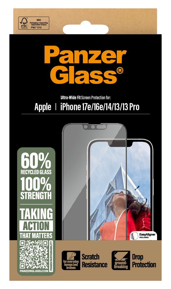 PanzerGlass® Displayschutz iPhone 17e | 16e | 14 | 13 | 13 Pro | Ultra-Wide Fit m. Aligner