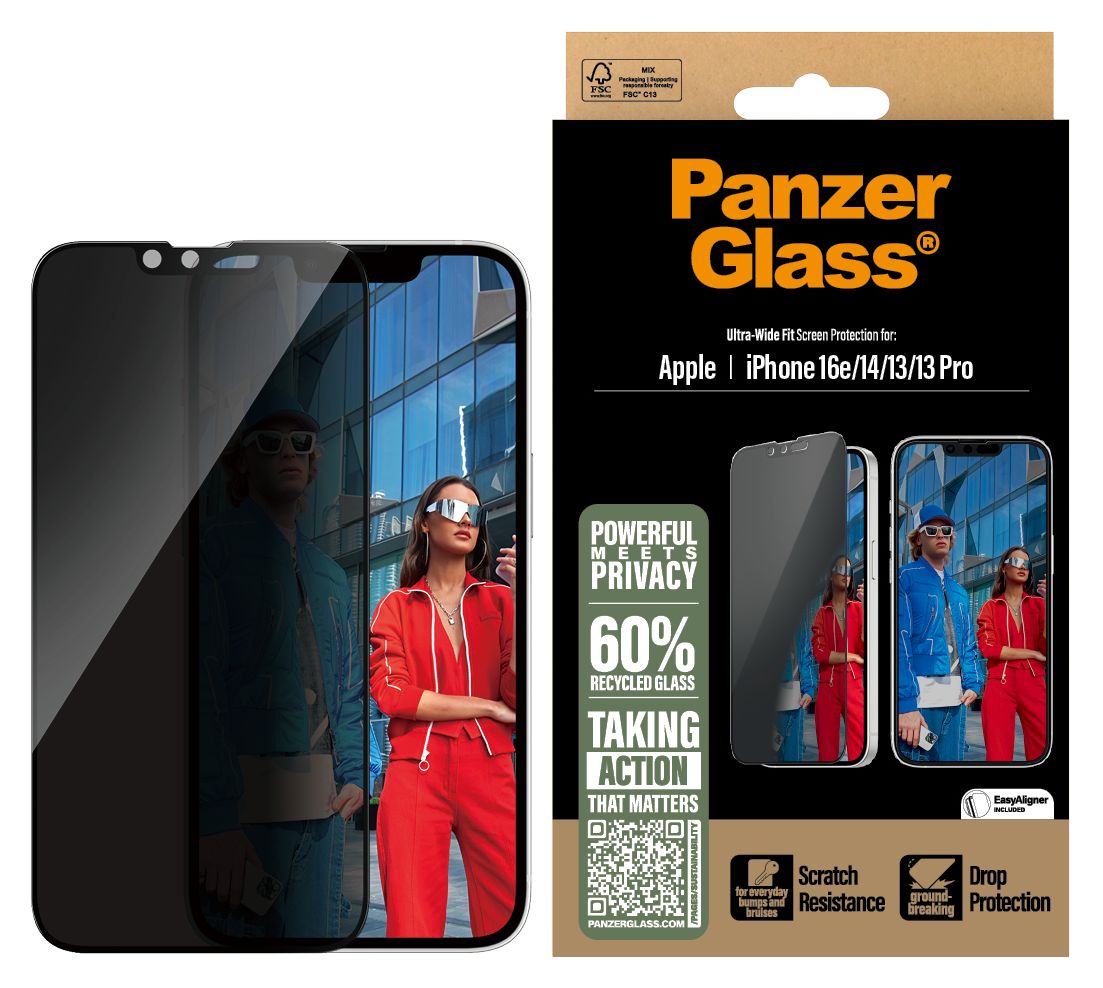 PanzerGlass® 2-Way Privacy Displayschutz iPhone 17e | 16e | 14 | 13 | 13 Pro | Ultra-Wide Fit m. Aligner