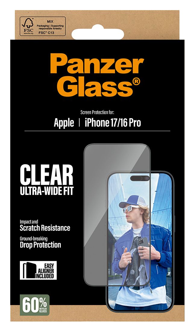 PanzerGlass® Displayschutz iPhone 17 | iPhone 16 Pro | Ultra-Wide Fit m. EasyAligner