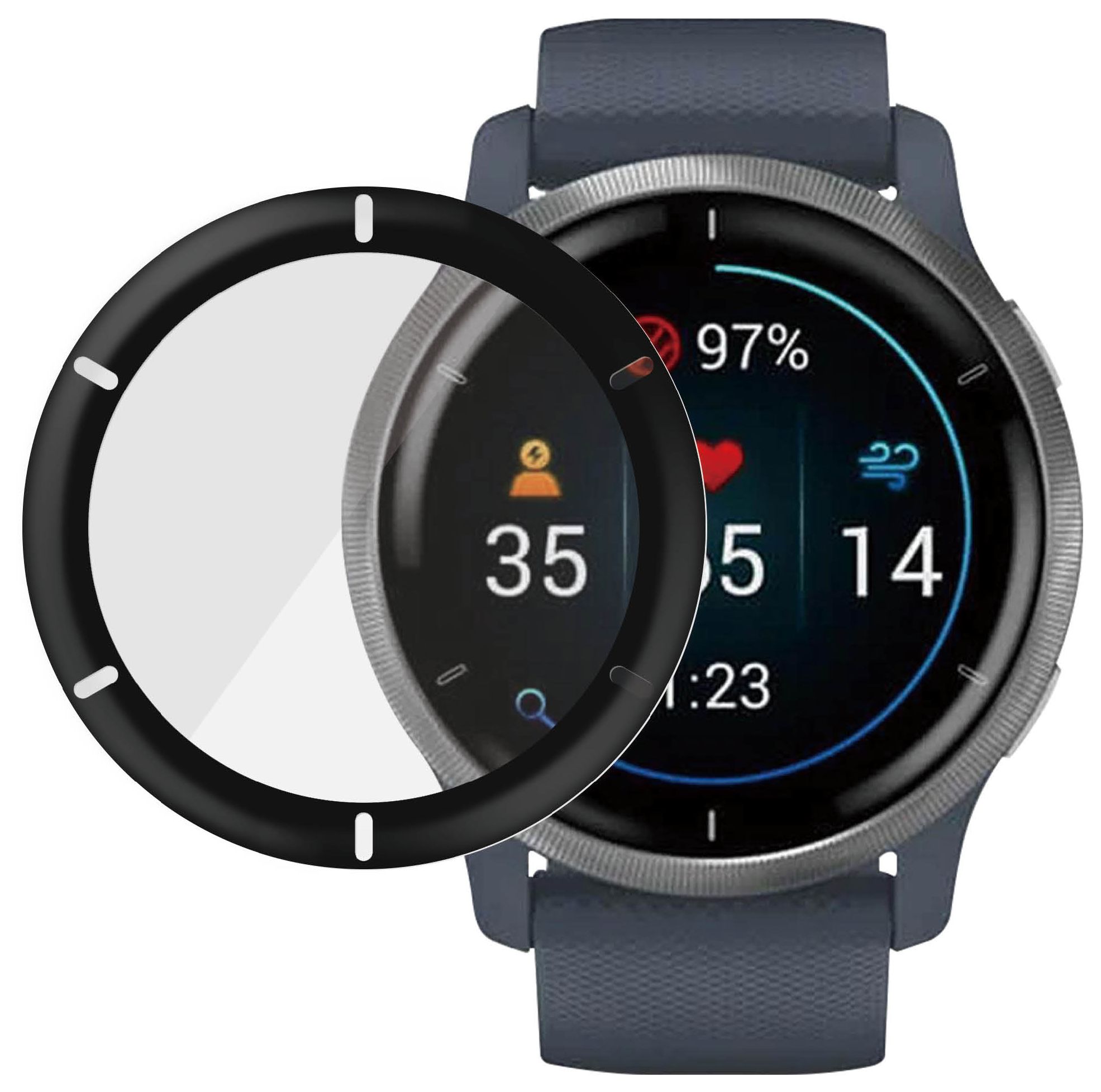 3652 Displayschutz Klare Bildschirmschutzfolie Gehärtetes Glas, Polyethylenterephthalat, Silikon für Garmin Garmin - Venu 2, Garmin - Venu 2 Plus, Garmin - Vivoactive 4 Kratzresistent, Schockresistent, Antibakteriell