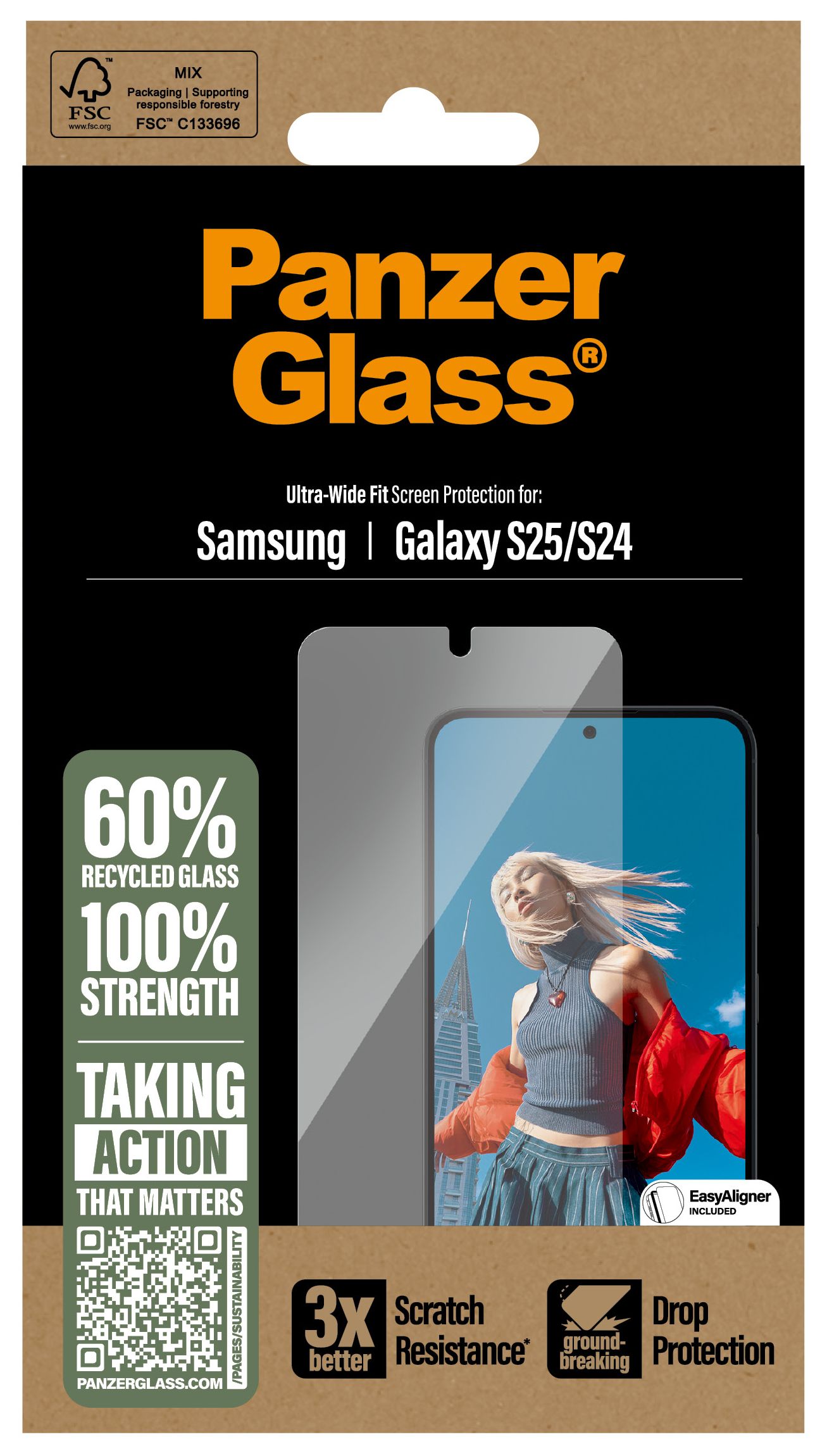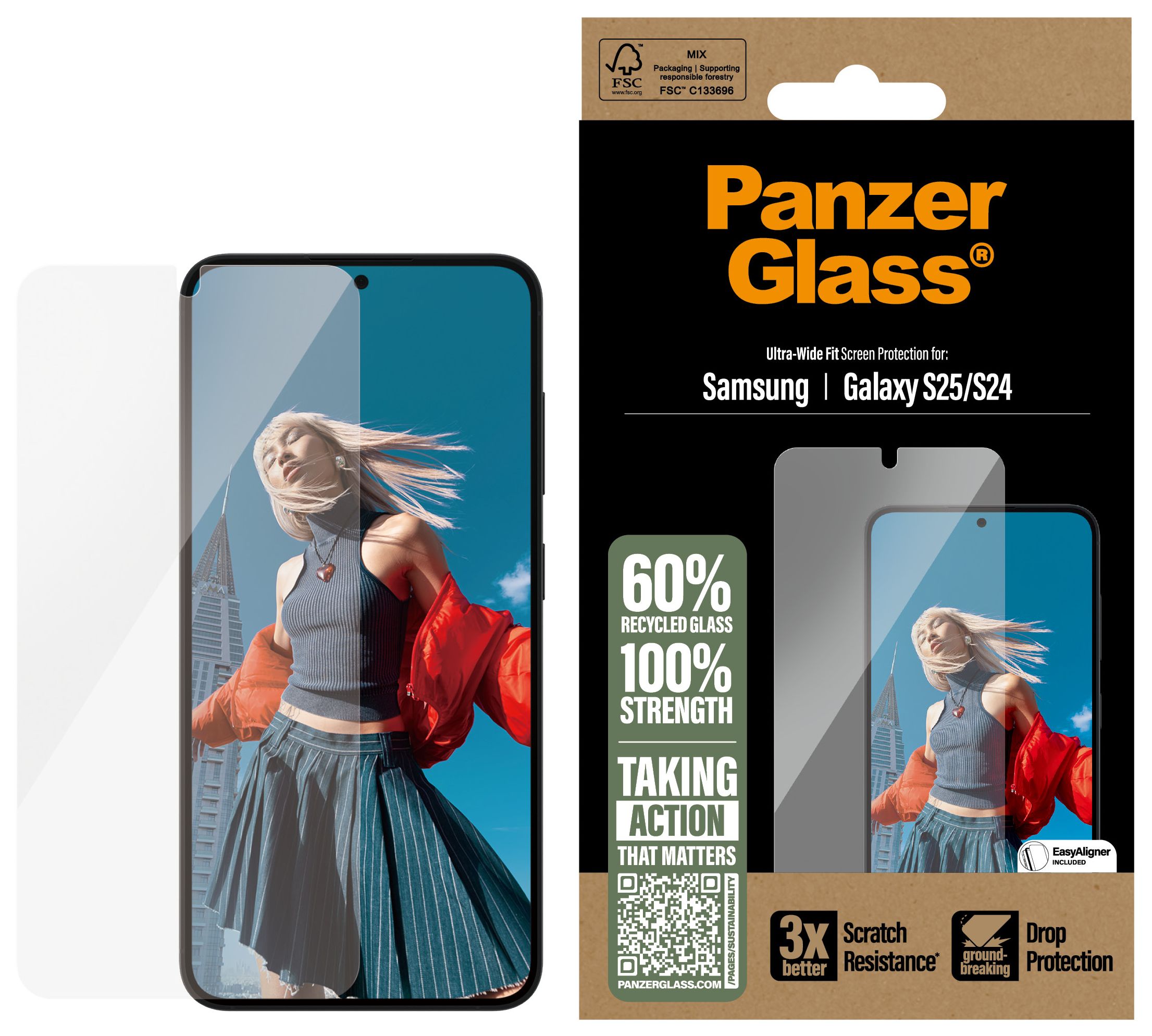 The best just got better! Dieser PanzerGlass® Displayschutz besteht zu 60% aus recyceltem Material, um dein Display vor Stößen, Stürzen und anderen Gefahren des Alltags zu schützen. Der Schutz hat sogar eine wischfeste Beschichtung, die Spuren von Fingerabdrücken und Fett reduziert. Und wenn du dir Sorgen um die Lesbarkeit von Fingerabdrücken machst, kannst du beruhigt sein: Der Displayschutz gewährleistet eine 100%ige Kompatibilität mit dem Ultraschall-Fingerabdruckleser deines Displays, sodass du sicher sein kannst, dass sich dein Handy jedes Mal problemlos entsperren lässt.