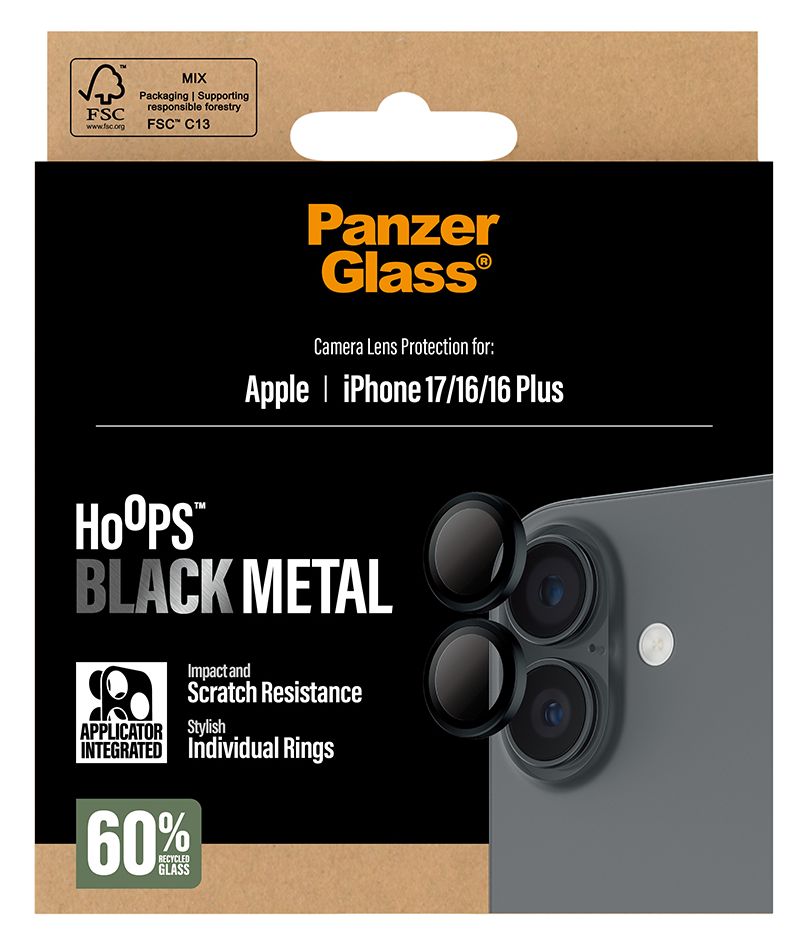 PanzerGlass® Hoops® Kameraschutz Schwarz iPhone 17 | iPhone 16 | 16 Plus