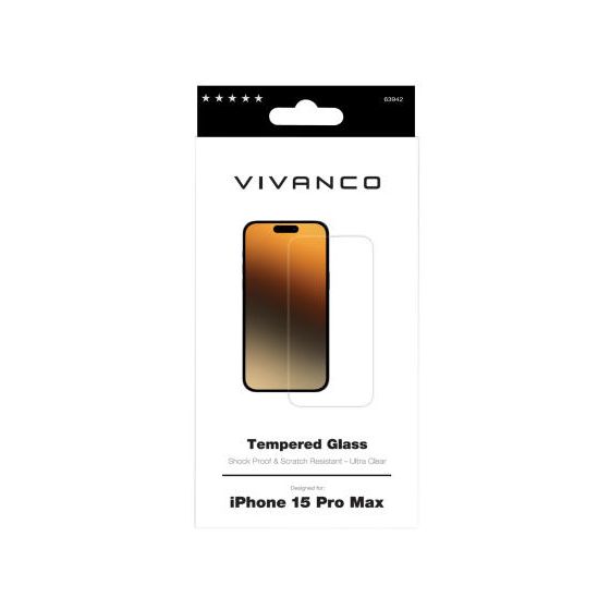 63942 Klare Bildschirmschutzfolie Glas 9H für Apple iPhone 15 Pro Max Stoßfest, Schmutzabweisend, Schlagfest, Kratzresistent