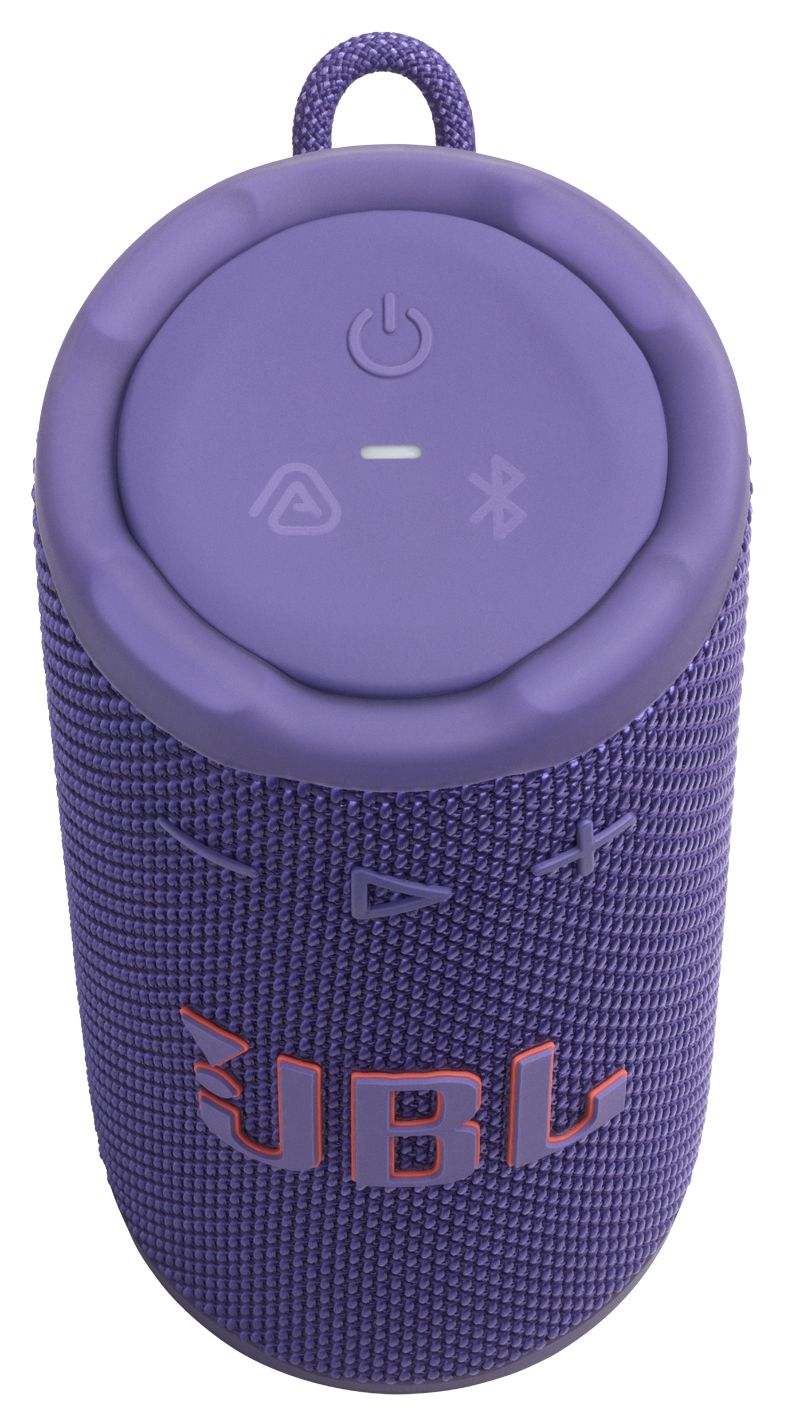 Der JBL Grip ist zwar klein genug, dass du ihn mit einer Hand halten kannst, bietet aber dennoch kräftigen JBL Pro Sound. Mit AI Sound Boost analysiert er Musik in Echtzeit und verwendet einen Algorithmus, um die Wiedergabe für einen volleren Sound mit weniger Verzerrung zu optimieren.