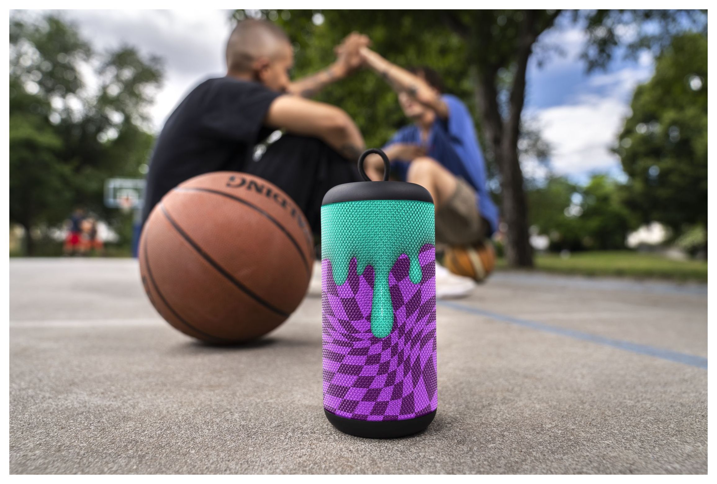 VERTICAL ist der ideale Bluetooth-Lautsprecher für alle, die qualitativ hochwertige Musik lieben und ein praktisches sowie vielseitiges Gerät suchen. Erhältlich in fünf bunten Designs, vereint dieser Lautsprecher Stil und Funktionalität. Dank seines kompakten Designs, des leichten Gewichts und des praktischen elastischen Riemens können Sie ihn überallhin mitnehmen und problemlos an Ihrem Rucksack befestigen. Mit einer Leistung von 5 Watt und bis zu 4 Stunden Akkulaufzeit gewährleistet er ein verlängertes Hören Ihrer Lieblings-Playlists, sowohl drinnen als auch draußen. Seine umfangreiche Kompatibilität ermöglicht die Verbindung über micro SD, USB, USB-C und AUX-Kabel, was maximale Flexibilität bietet. Die weichen Stoffoberflächen vervollständigen ein Produkt, das dafür entwickelt wurde, Sie in jedem Moment zu begleiten.
