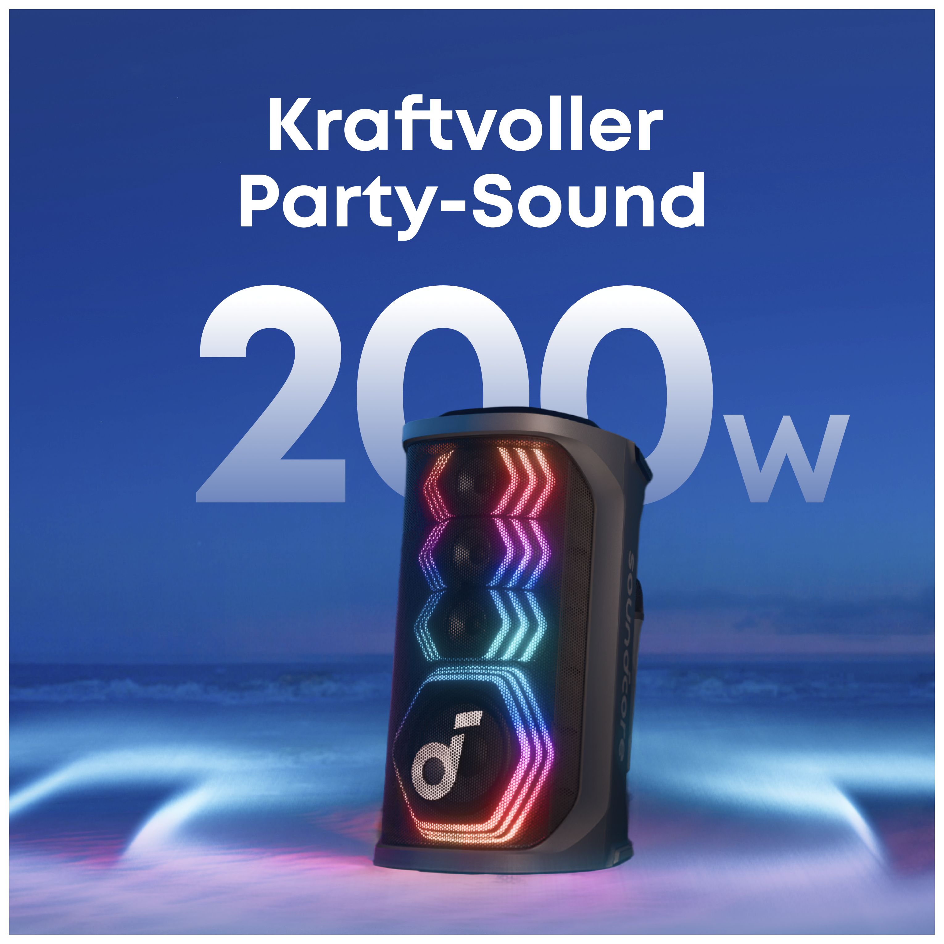 Rave 3S 200 W Bluetooth Lautsprecher IPX4 Laufzeit bis 12 h (Schwarz)