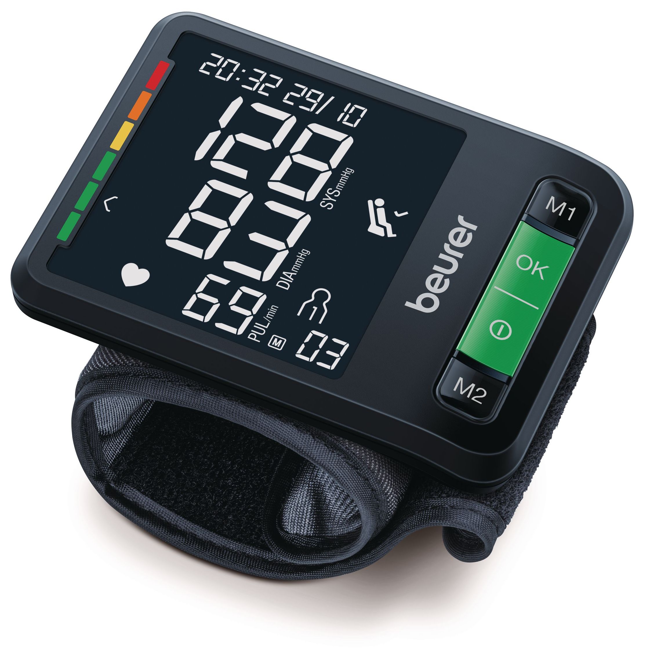 Einfach und komfortabel: Vollautomatische Blutdruck- und Pulsmessung am Handgelenk. Dank dem großen XL-Display und der farbigen Einstufung der Messergebnisse haben Sie Ihre Werte immer im Blick. Damit Sie die ideale Messposition auf Herzhöhe erreichen, verfügt das Blutdruckmessgerät über eine integrierte Positionierungsanzeige.