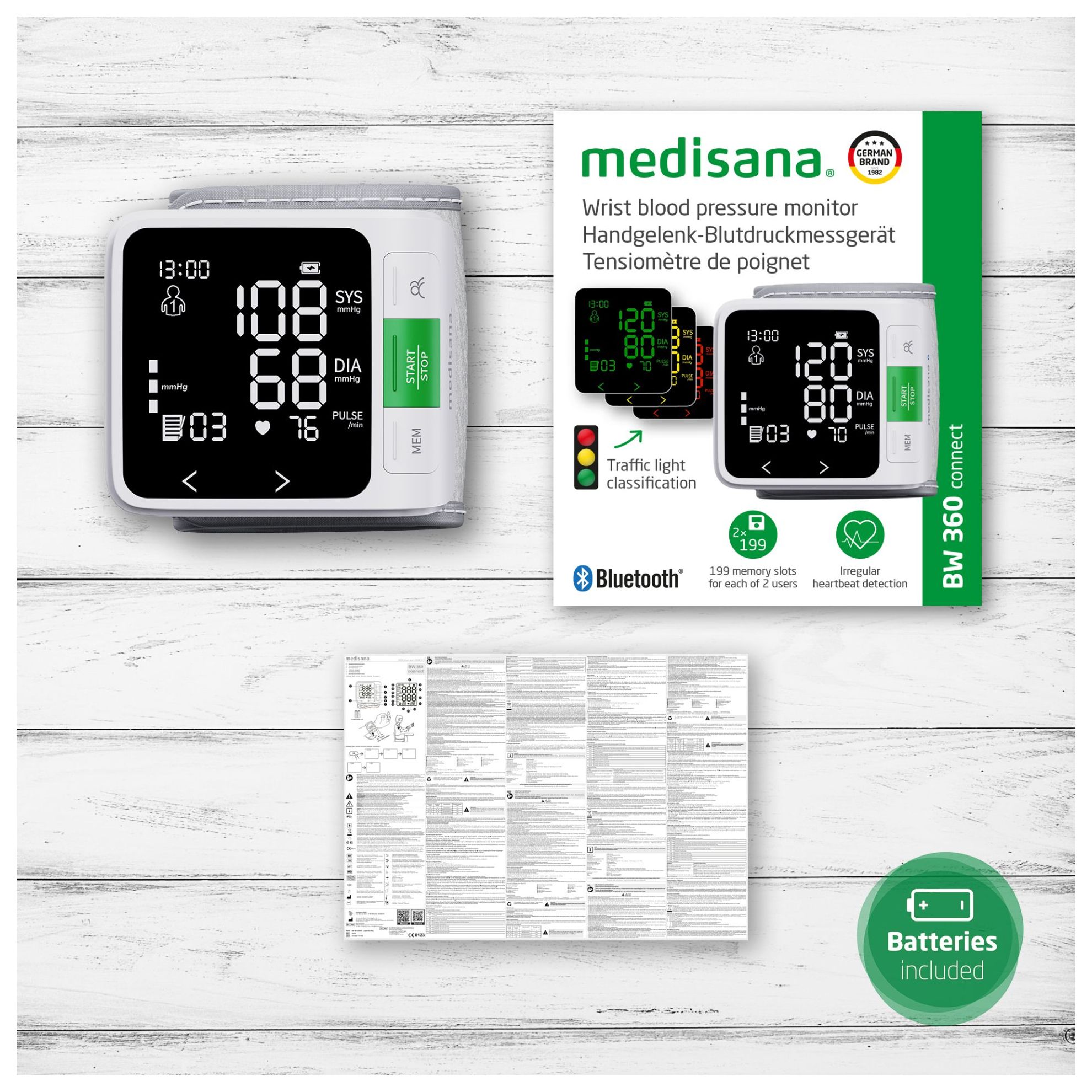 Das BW 360 connect von medisana ist ein kompakter Begleiter für eine präzise Blutdruckmessung am Handgelenk – ideal für zuhause oder unterwegs. Mit digitaler Konnektivität, einfacher Handhabung und Anzeige von unregelmäßigem Herzschlag unterstützt es zuverlässig bei der Gesundheitskontrolle – auch als zertifiziertes Medizinprodukt.