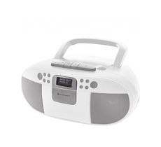 DAB+/FM, CD, CD-R/RW, CD-MP3, USB, 3.5 mm Aux, 2 x 1.5 W RMS, 230V, 50Hz, DC 9V, 6 x LR14/C, 29 cm x 22.5 cm x 13.5 cm, Weiß