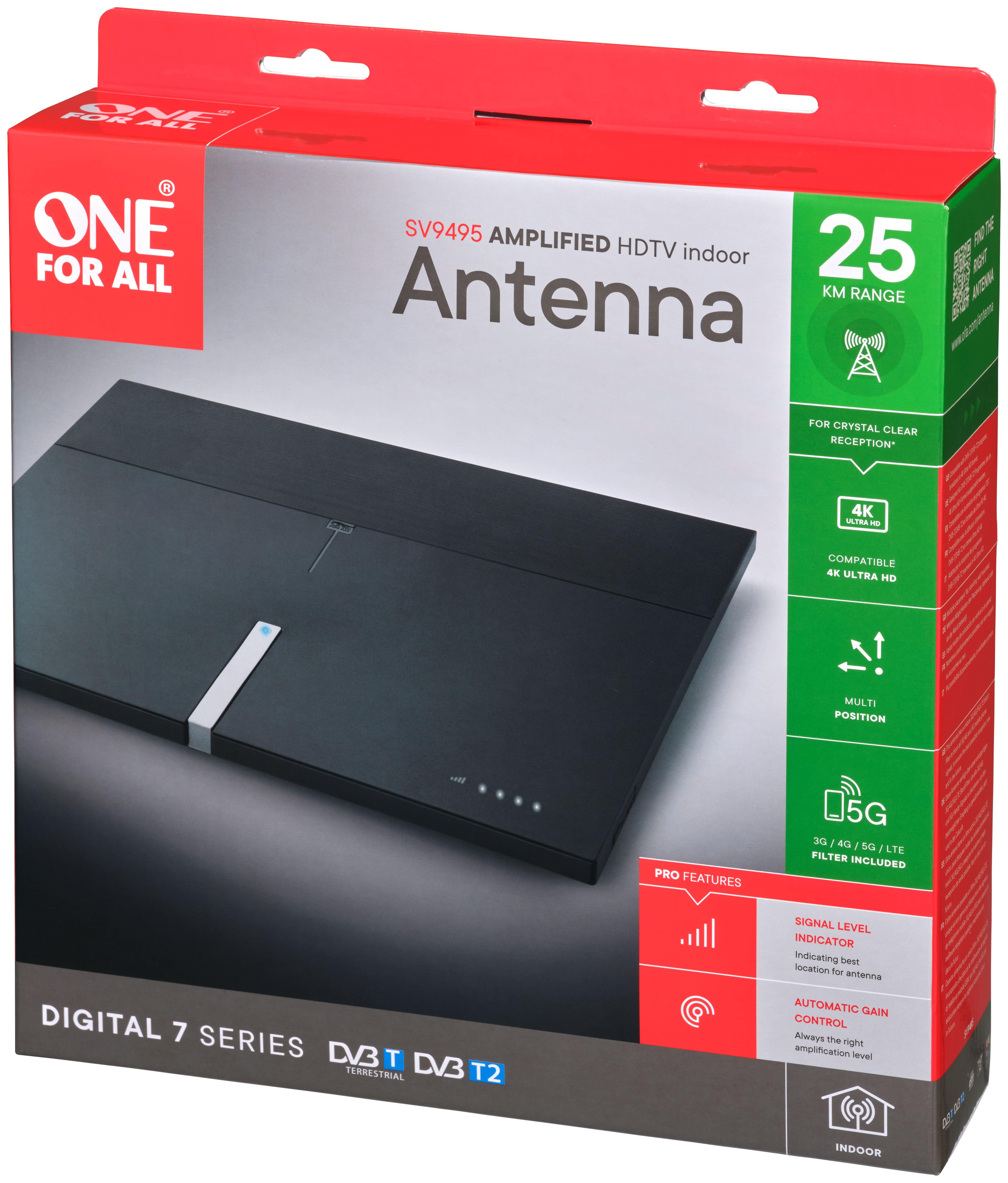 Die Desgin-Antenne kann flach liegend, stehend oder an der Wand hängend installiert werden und fügt sich so in jede Umgebung ein. Sie ermöglicht selbst den Empfang von 4k Ultra HD-Programmen und unterstützt sowohl TV (DVB-T/DVB-T2) als auch Digitalradio (DAB+). Die automatische Verstärkungsregelung sorgt für ein optimales, gleichmäßiges Ausgangssignal. Einfach anschließen und sofort TV genießen.