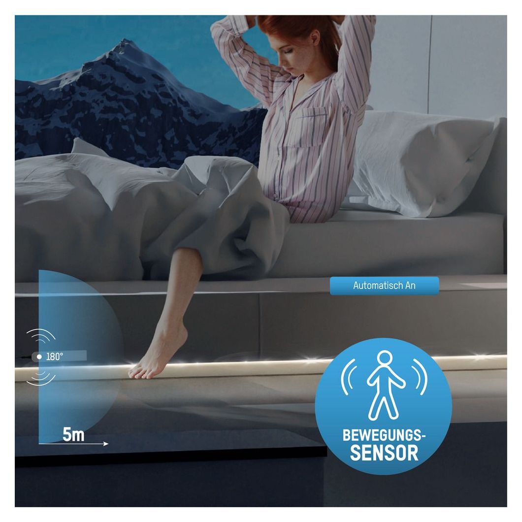 Das LED-Band mit Sensor sorgt für eine optimale Helligkeit im Dunkeln. Mithilfe des PIR-Sensor schaltet sich das LED-Licht nur dann ein, sobald es eine Bewegung wahrnimmt.